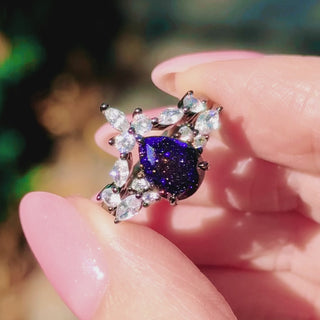 ►The delicate band adds a modern, elegant touch, making this ring set a perfect choice for those seeking a unique, non-traditional engagement ring with a cosmic flair. The Skye Starry Night set is designed for those who dream of the stars and want a ring as extraordinary as their love.