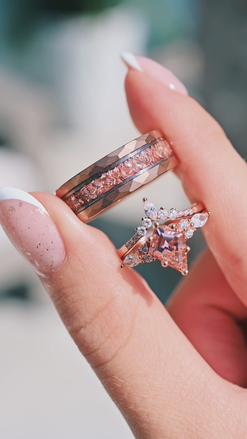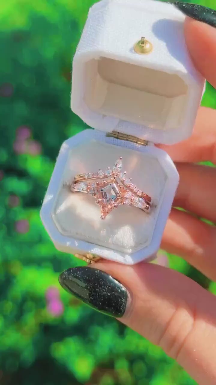 Embrace nature's elegance with our exquisite Morganite Ring Set, beautifully crafted in 14K solid rose gold.