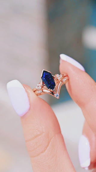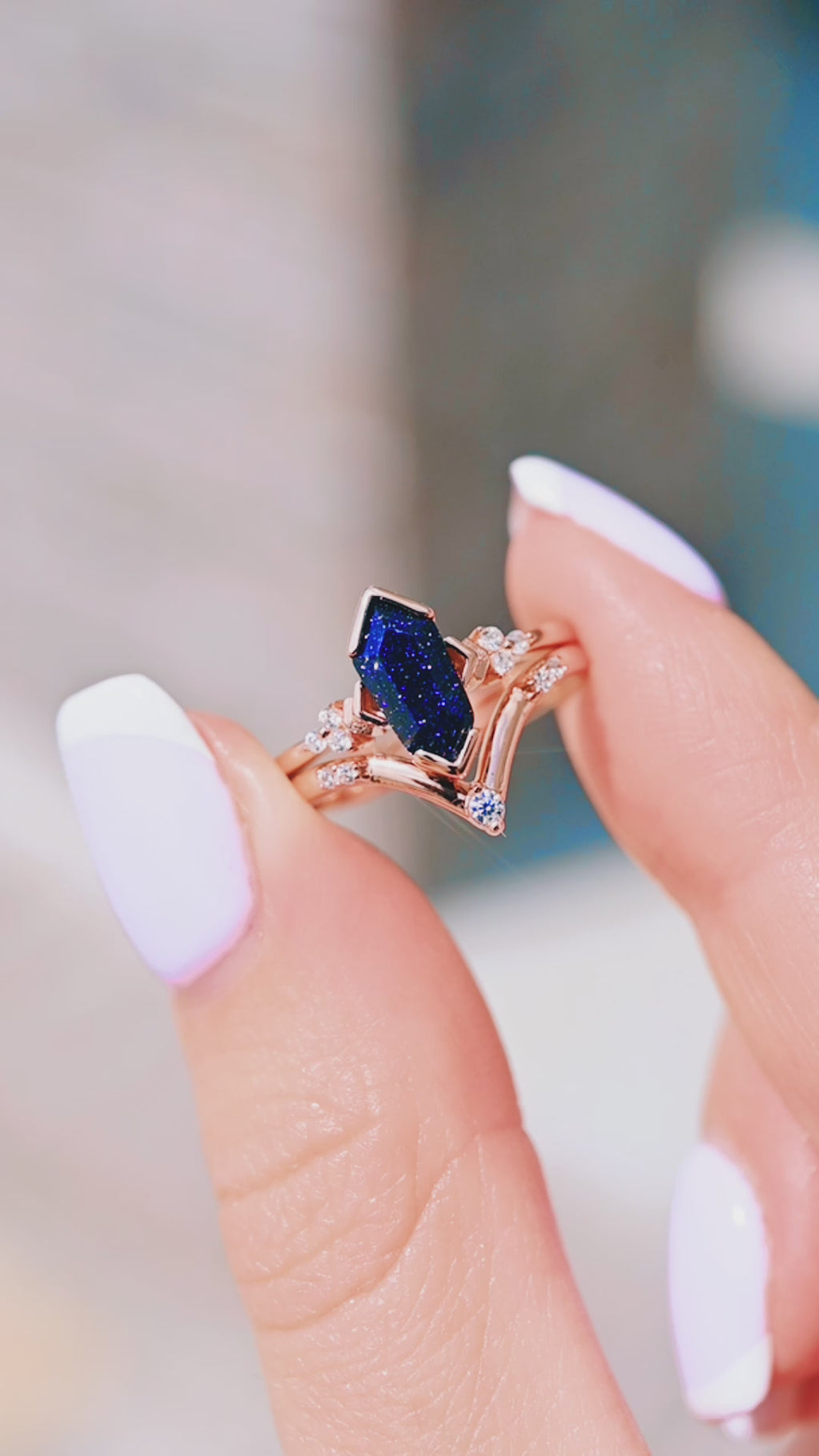 Galaxy Sandstone (Starry Night) Engagement Ring Set in 14K Solid Rose Gold