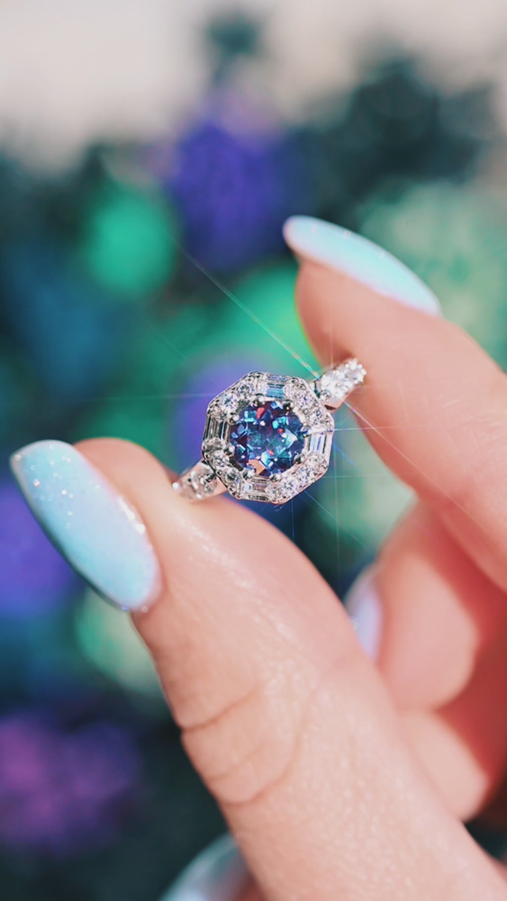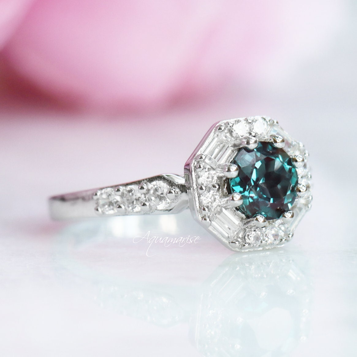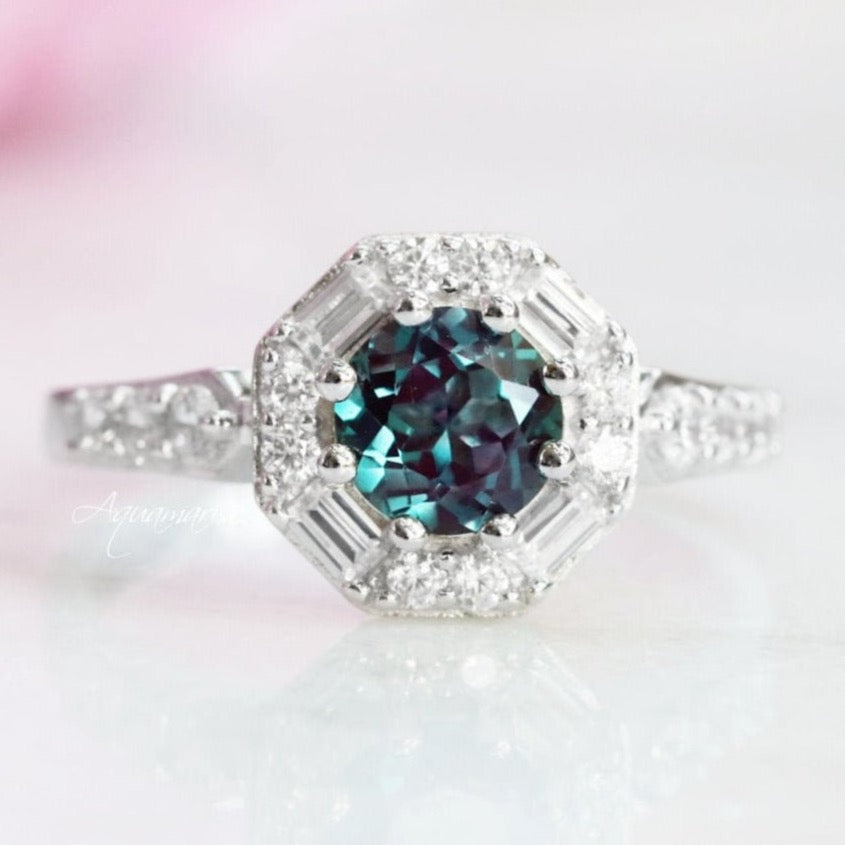 Hexagon Alexandrite Ring- Sterling Silver
