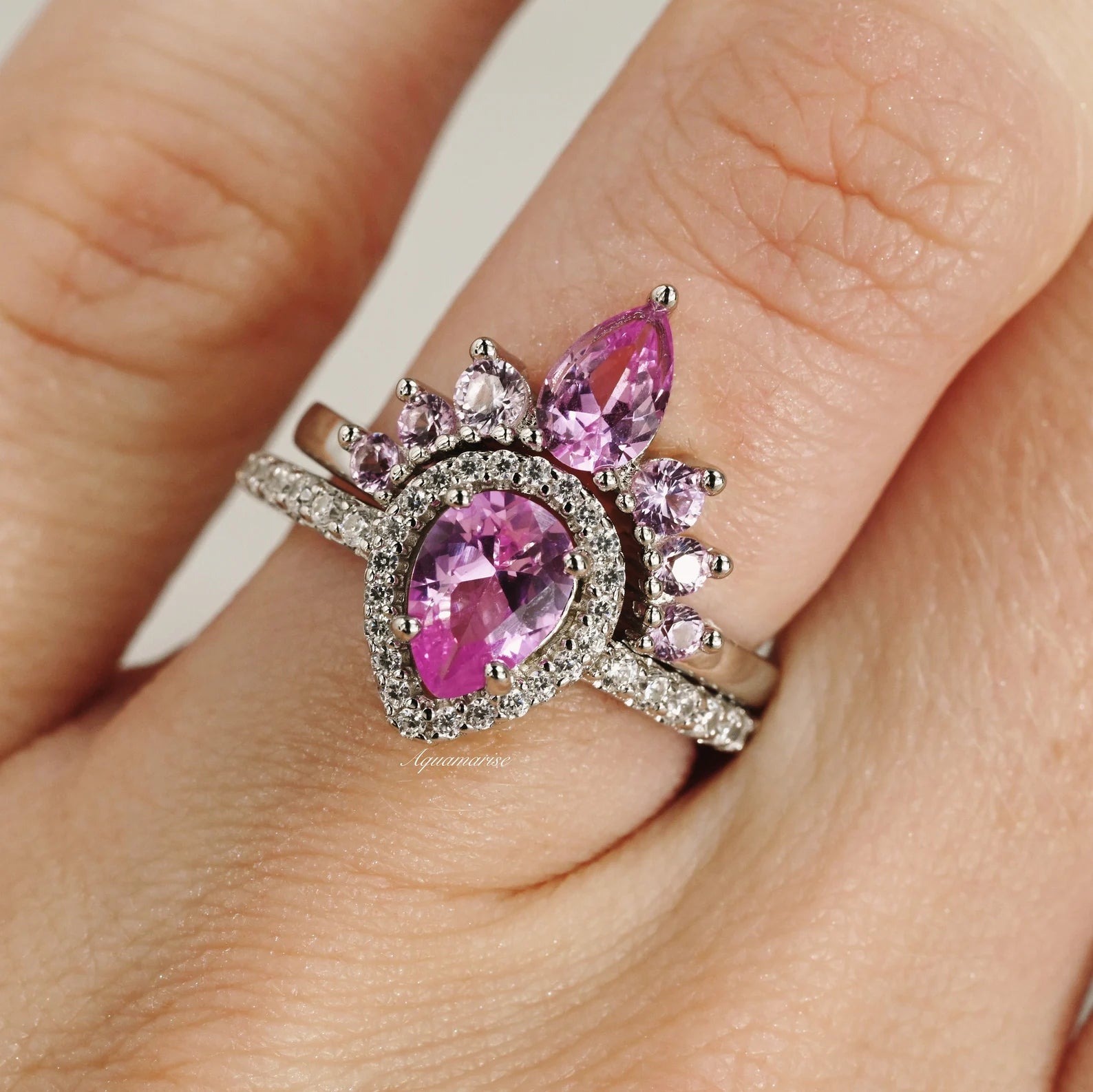 Whether you're celebrating a September birthday or simply drawn to the elegant sparkle of pink gemstones, this versatile ring set adds a graceful, feminine touch to any jewelry collection.