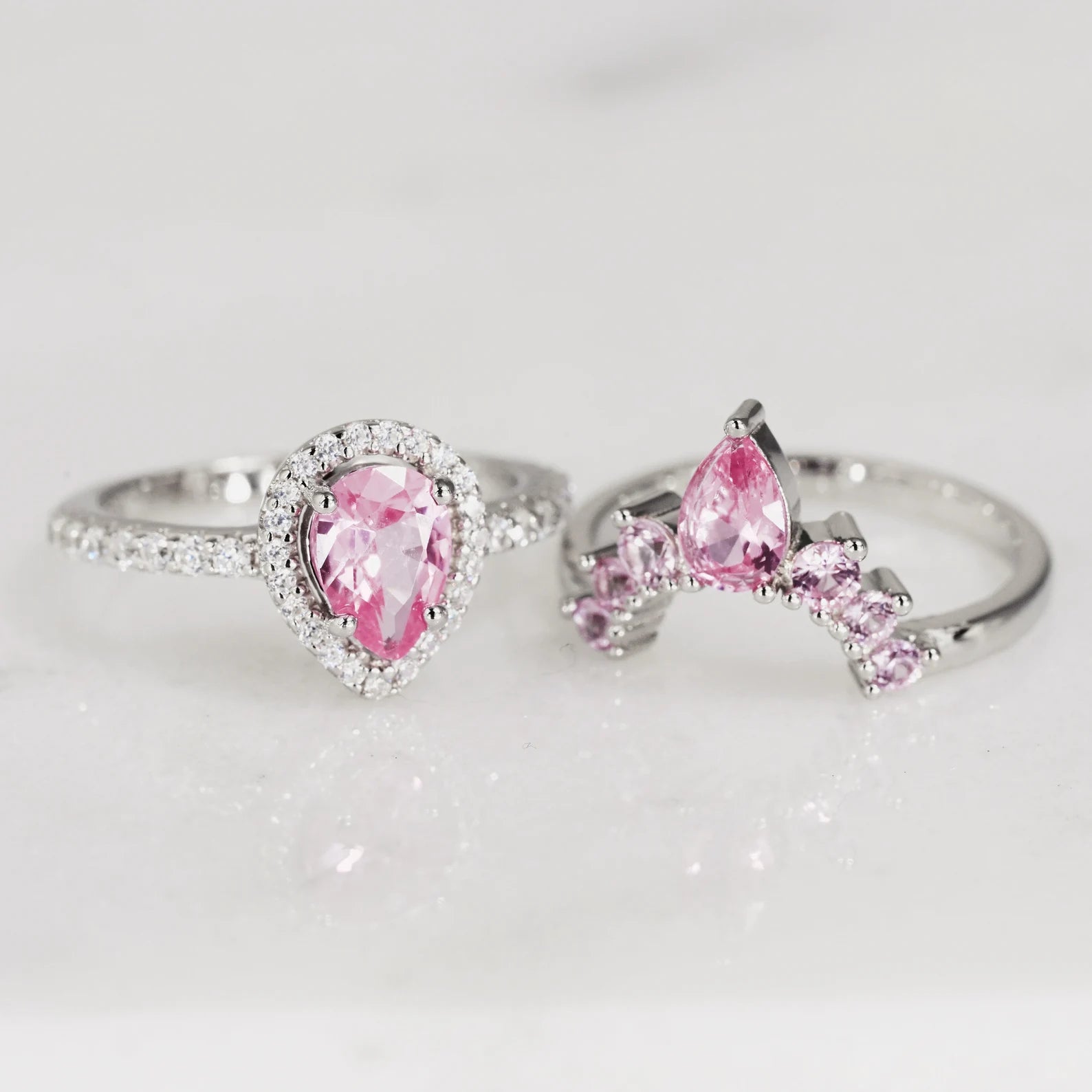 Make a timeless statement with this vintage-inspired lab-grown pink sapphire ring set, crafted in solid 925 sterling silver. Featuring a brilliant pear-cut lab-grown sapphire in a romantic blush hue, this ring is a stunning choice for an engagement ring, promise ring, or everyday statement piece.