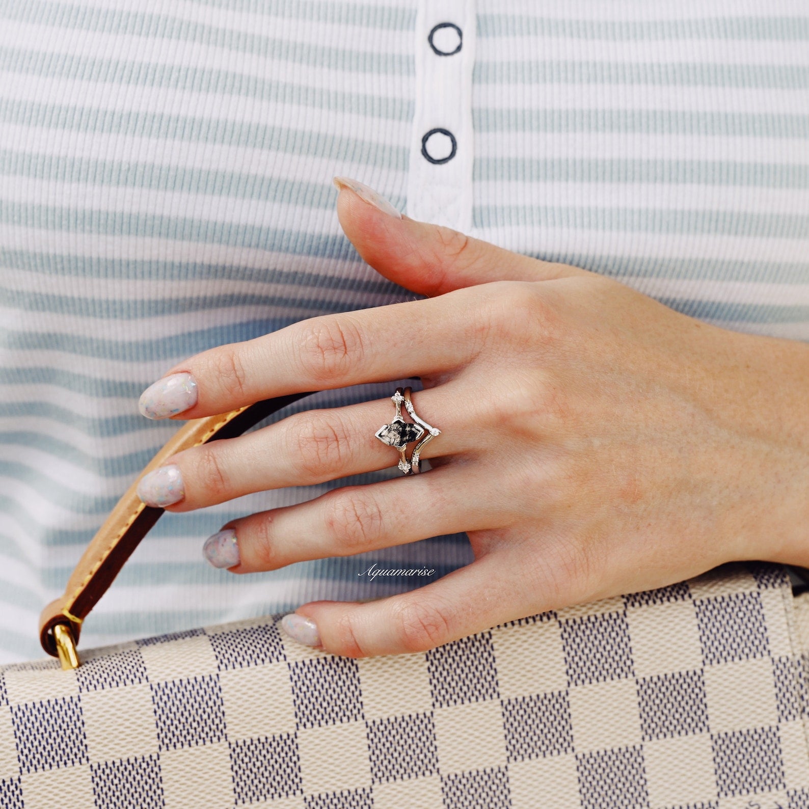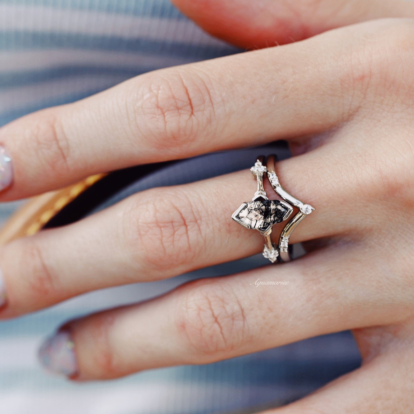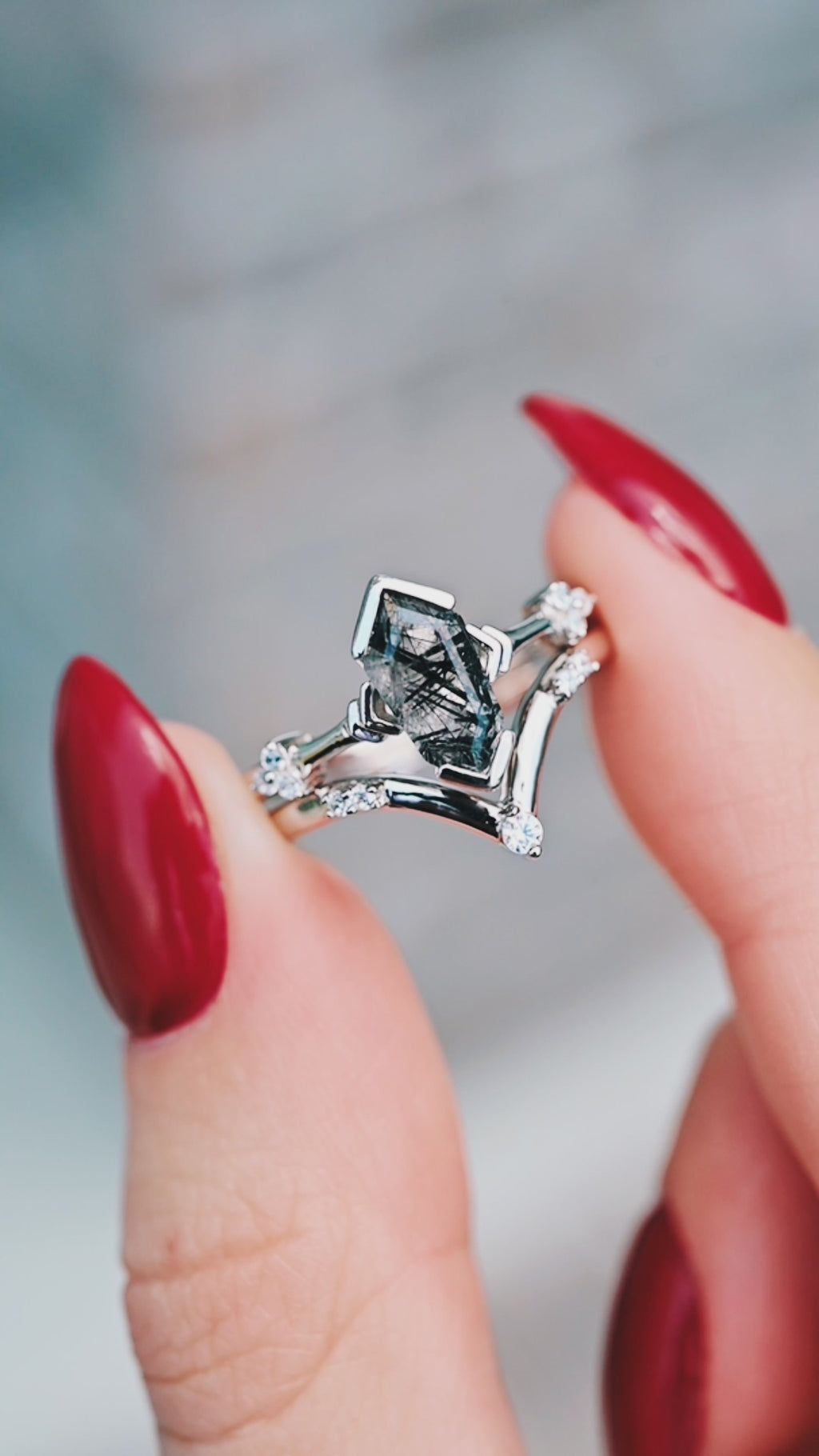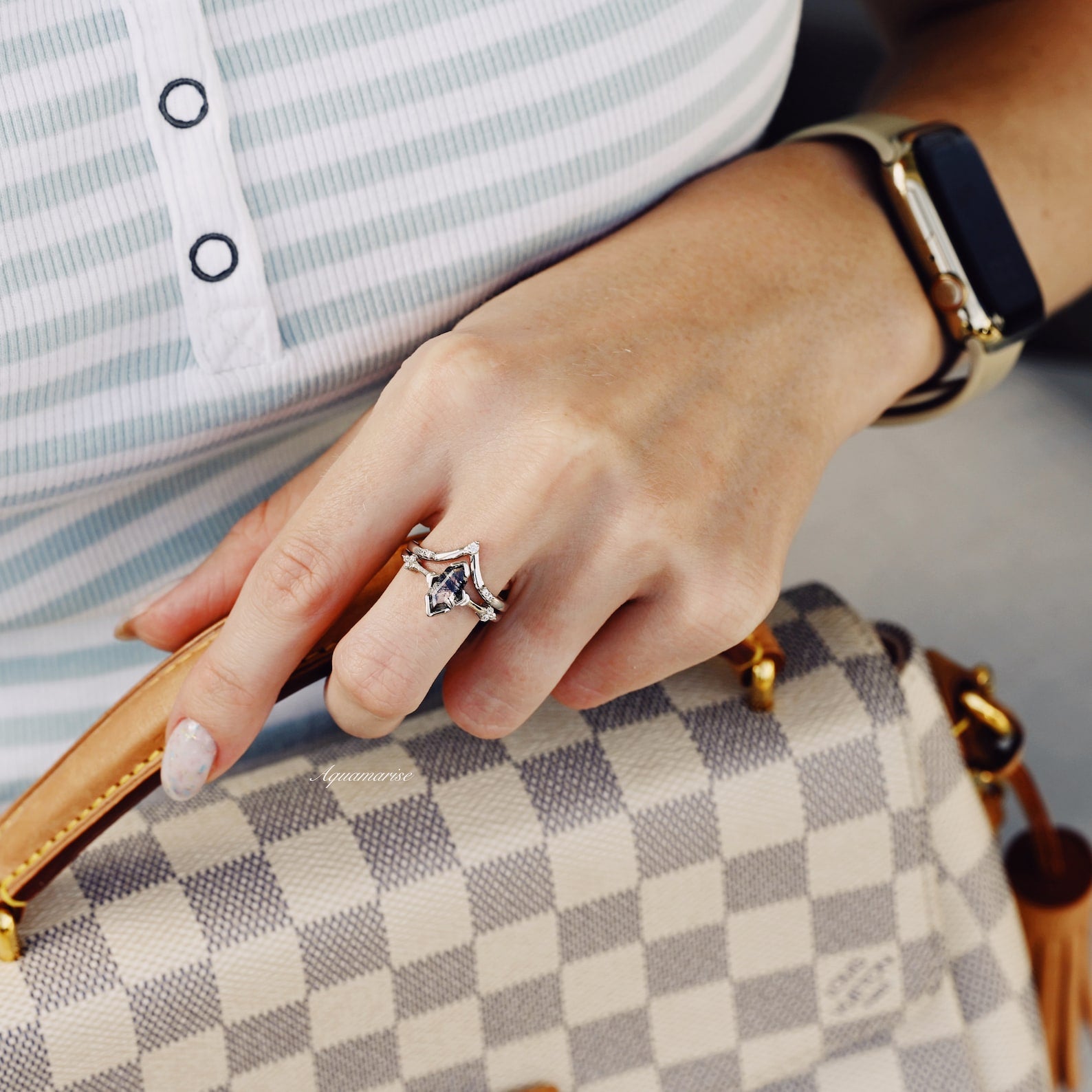 Hexagon Coffin Rutilated Quartz Engagement Ring Set in Sterling Silver
