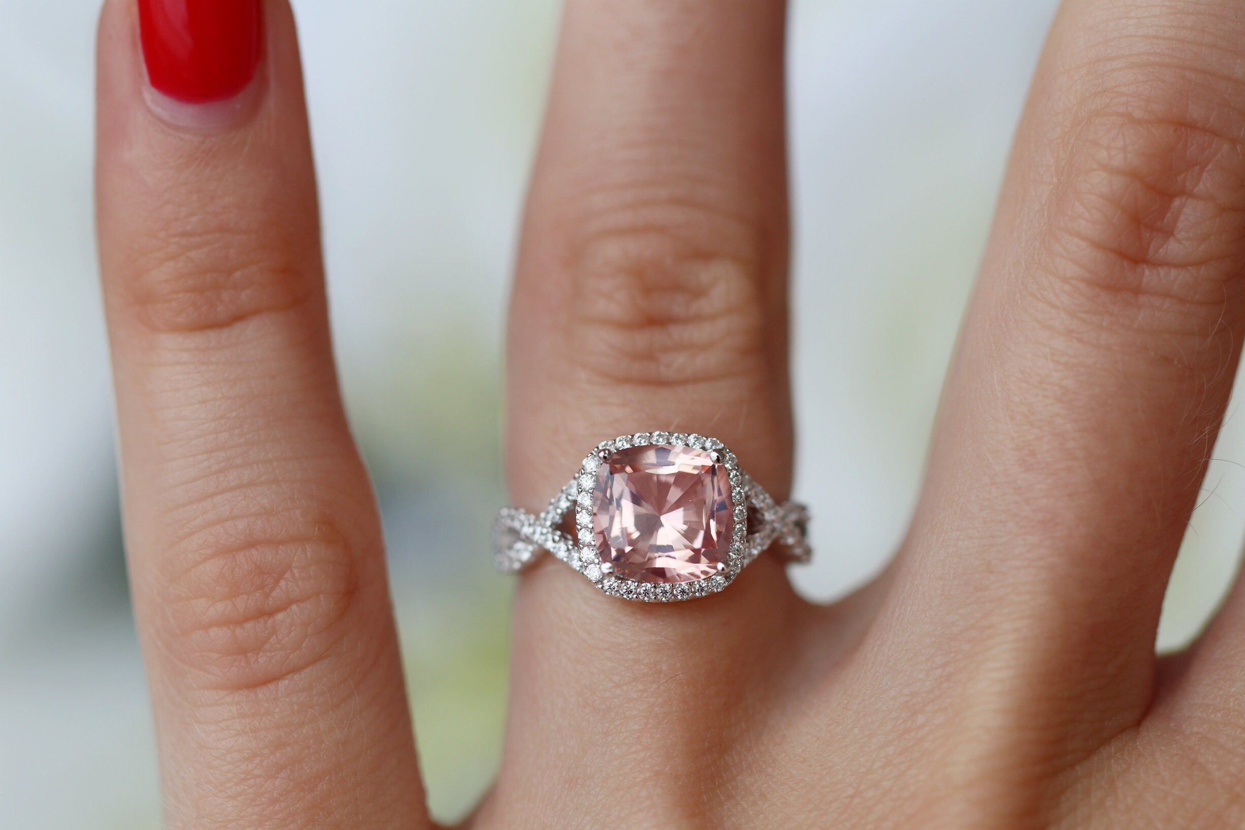 ► Elegant Cushion Cut Morganite Center Stone