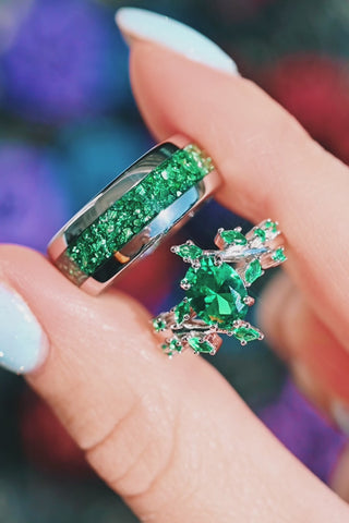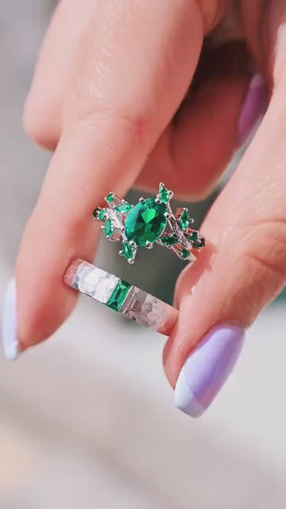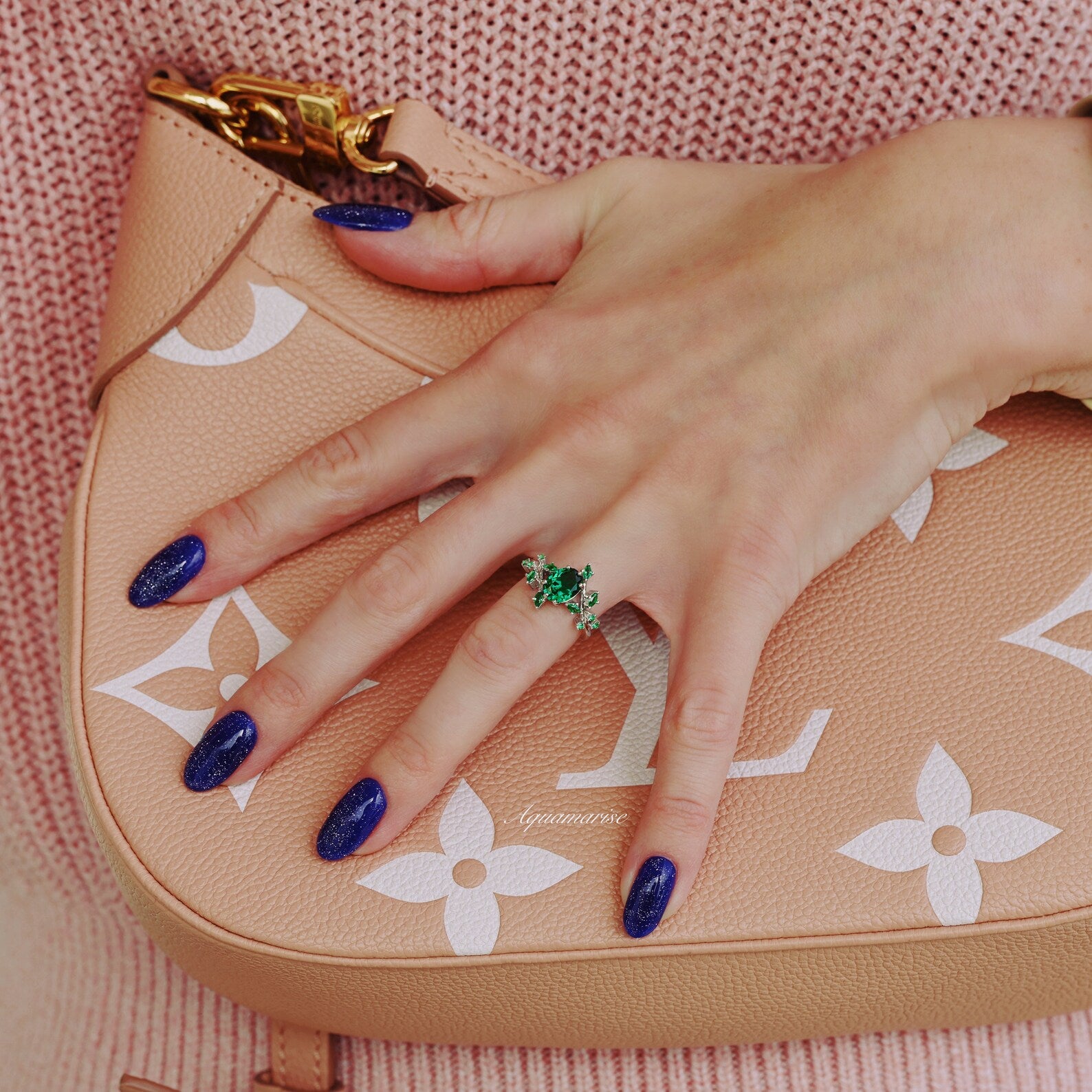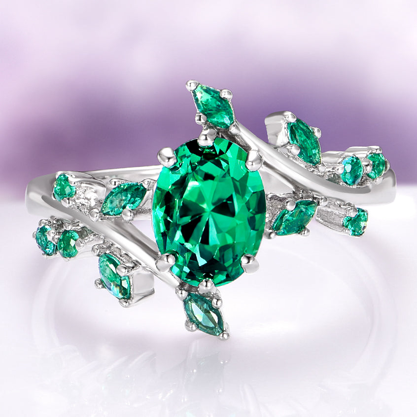 ►As a promise ring or engagement ring, this piece is designed to express your commitment in a distinctive and meaningful way. The emerald green gemstone, coupled with the symbolic leaf motif, creates a one-of-a-kind piece that tells a story of love, growth, and enduring connection.