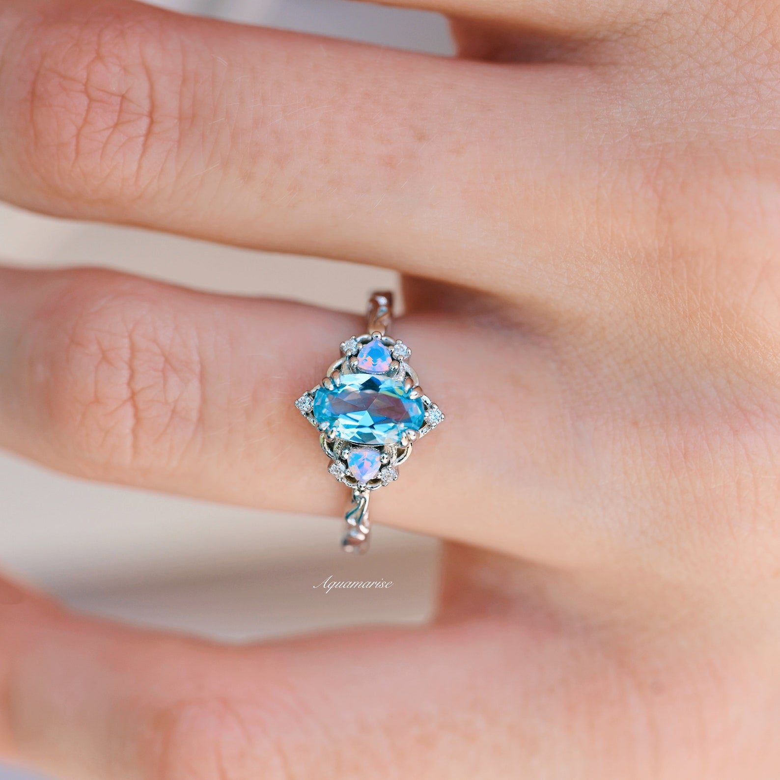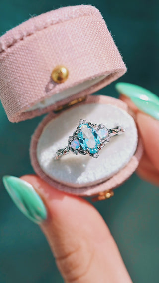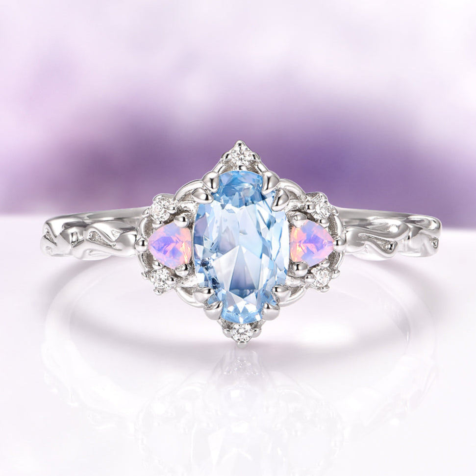 Esme Aquamarine and Opalescent Sapphire Ring in Sterling Silver