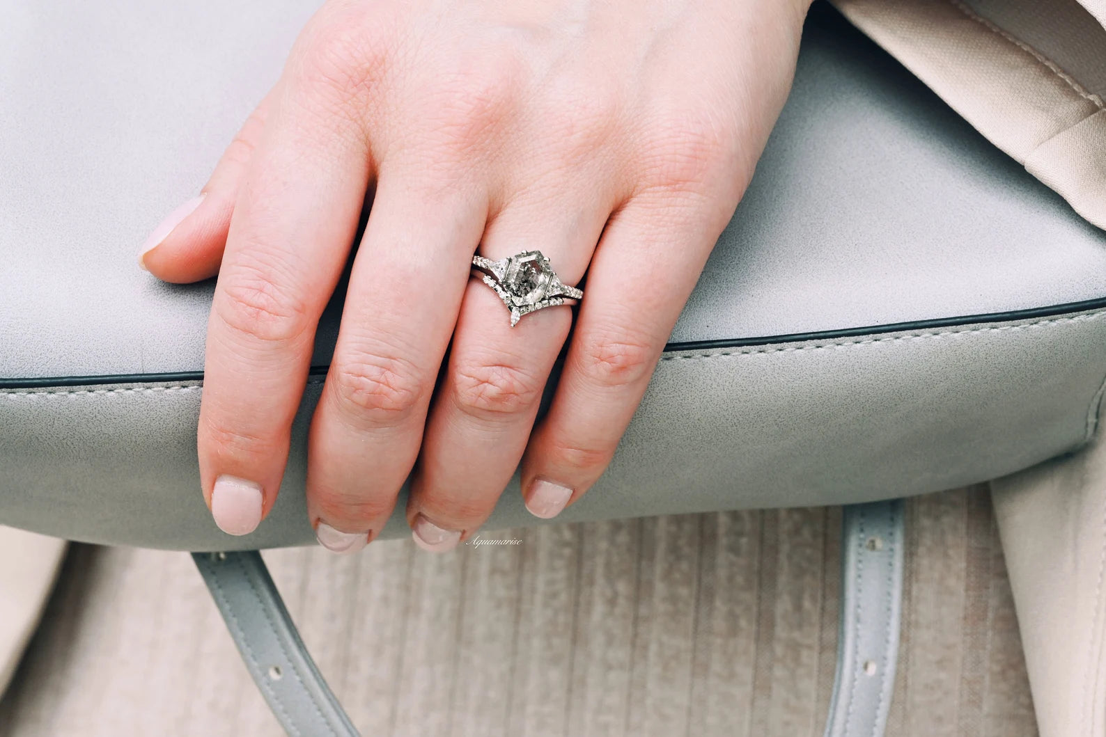 Elevate your jewelry collection with this gorgeous hexagon cut salt and pepper Herkimer diamond ring set, crafted in 925 solid sterling silver. Featuring a natural raw hexagon Herkimer diamond, this ring combines timeless elegance with a modern edge, making it the perfect piece for everyday wear or special occasions.