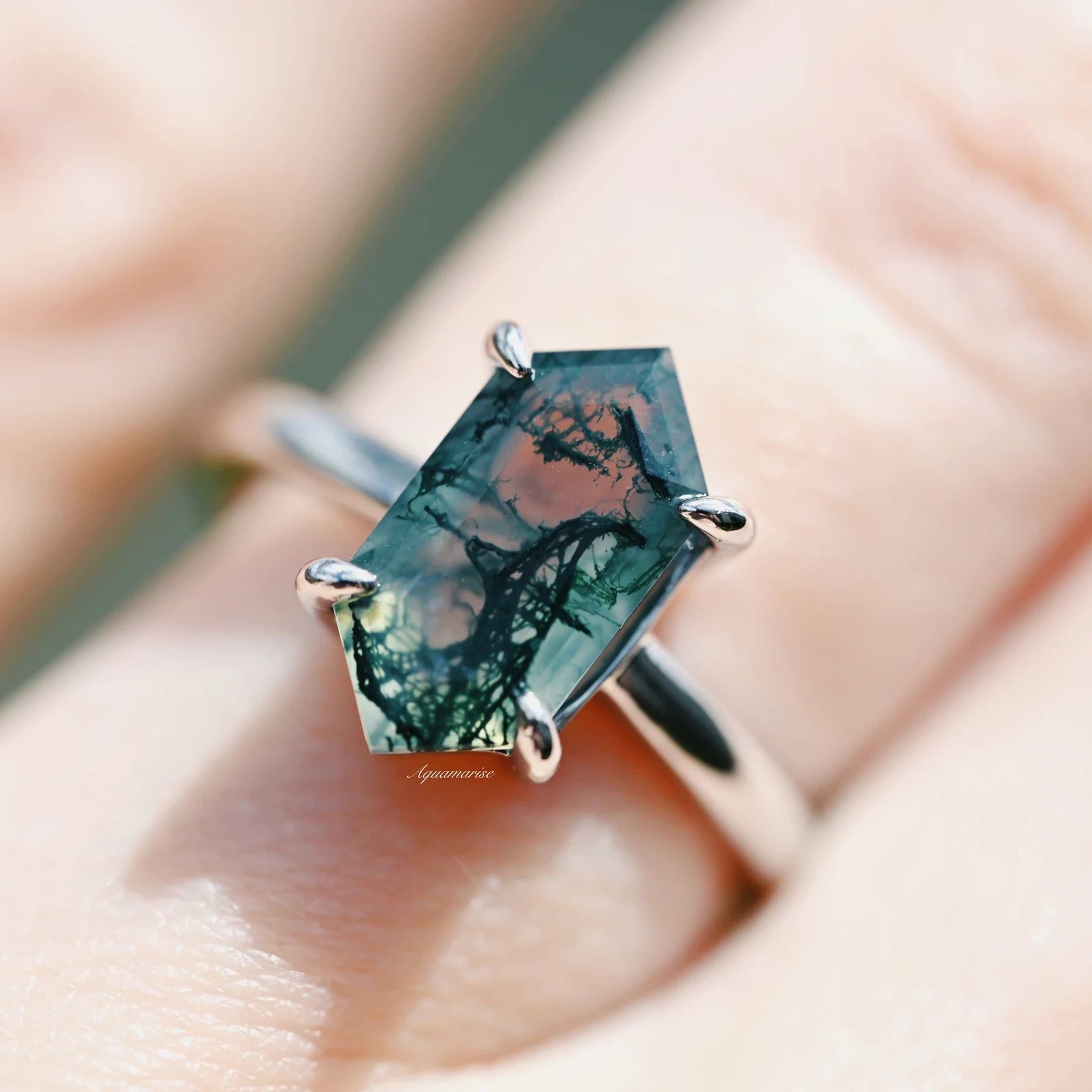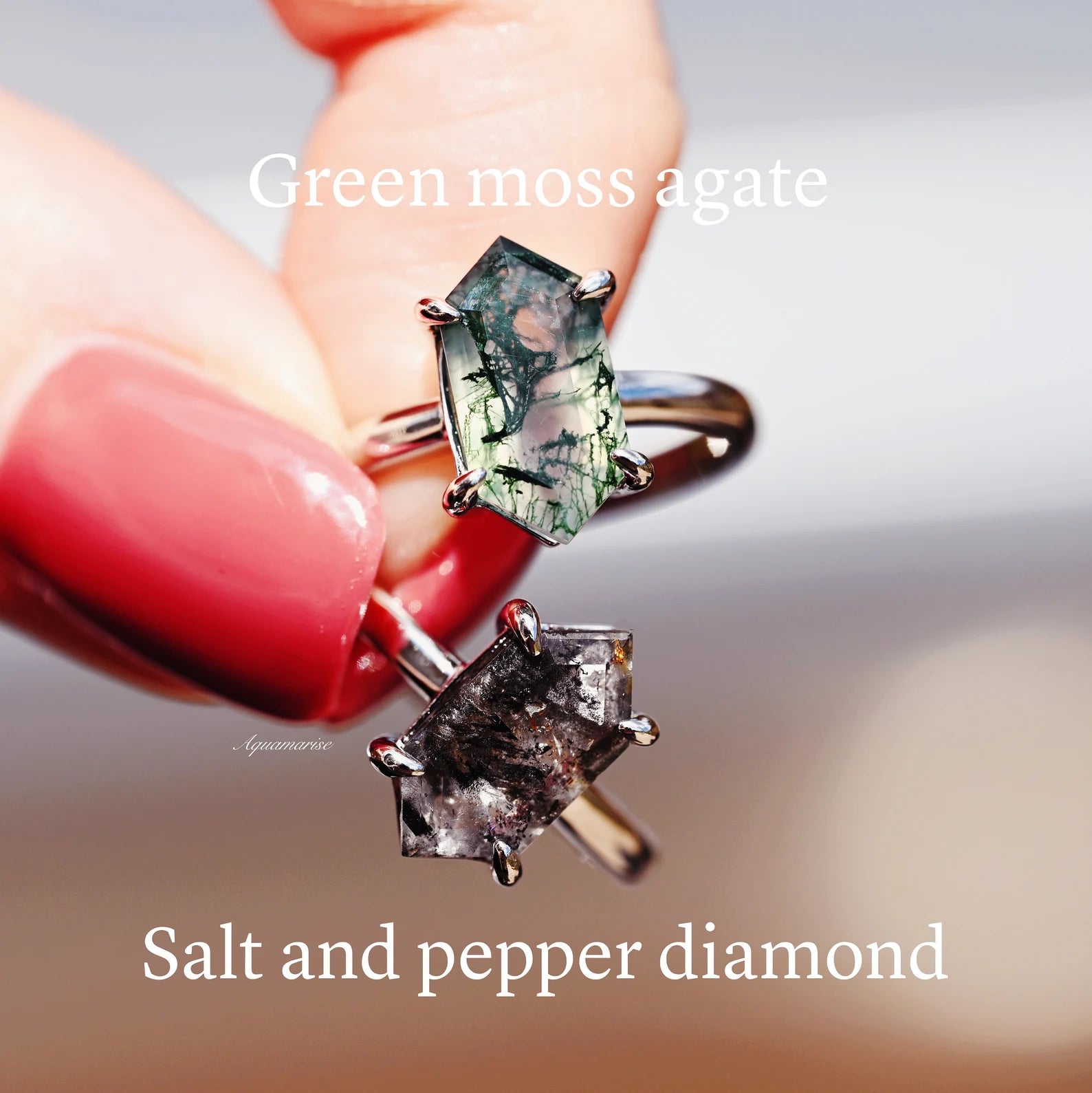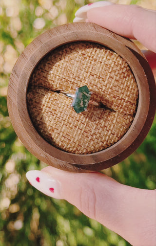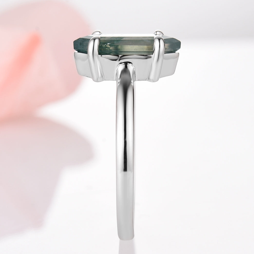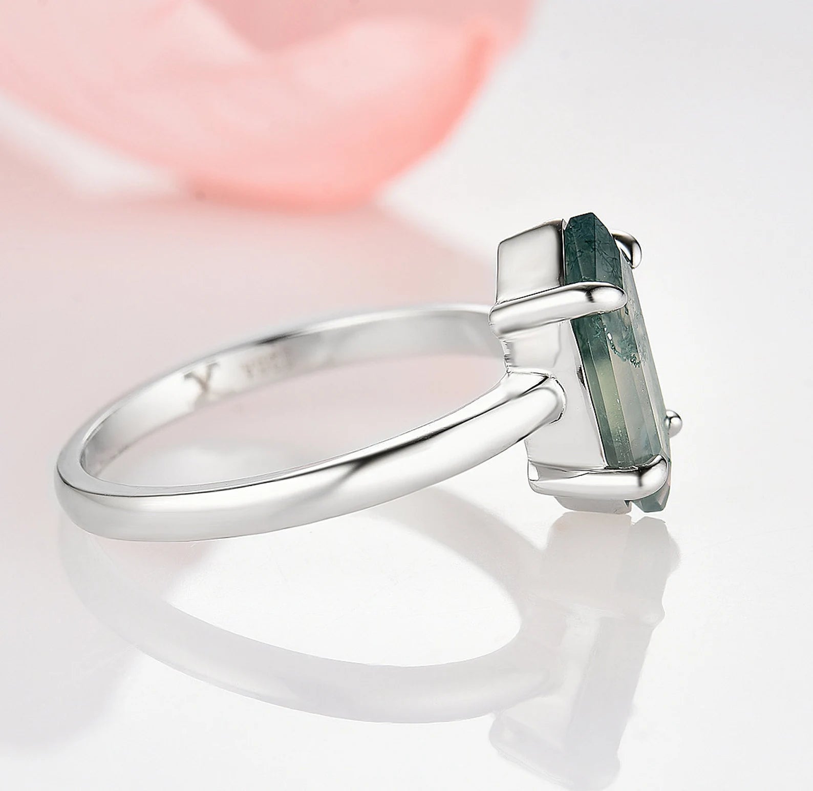 Gorgeous minimalist natural moss agate ring is made of 925 solid sterling silver, making a simple but elegant statement piece. This ring is perfect to wear as engagement ring, promise ring, birthstone ring, or statement piece.