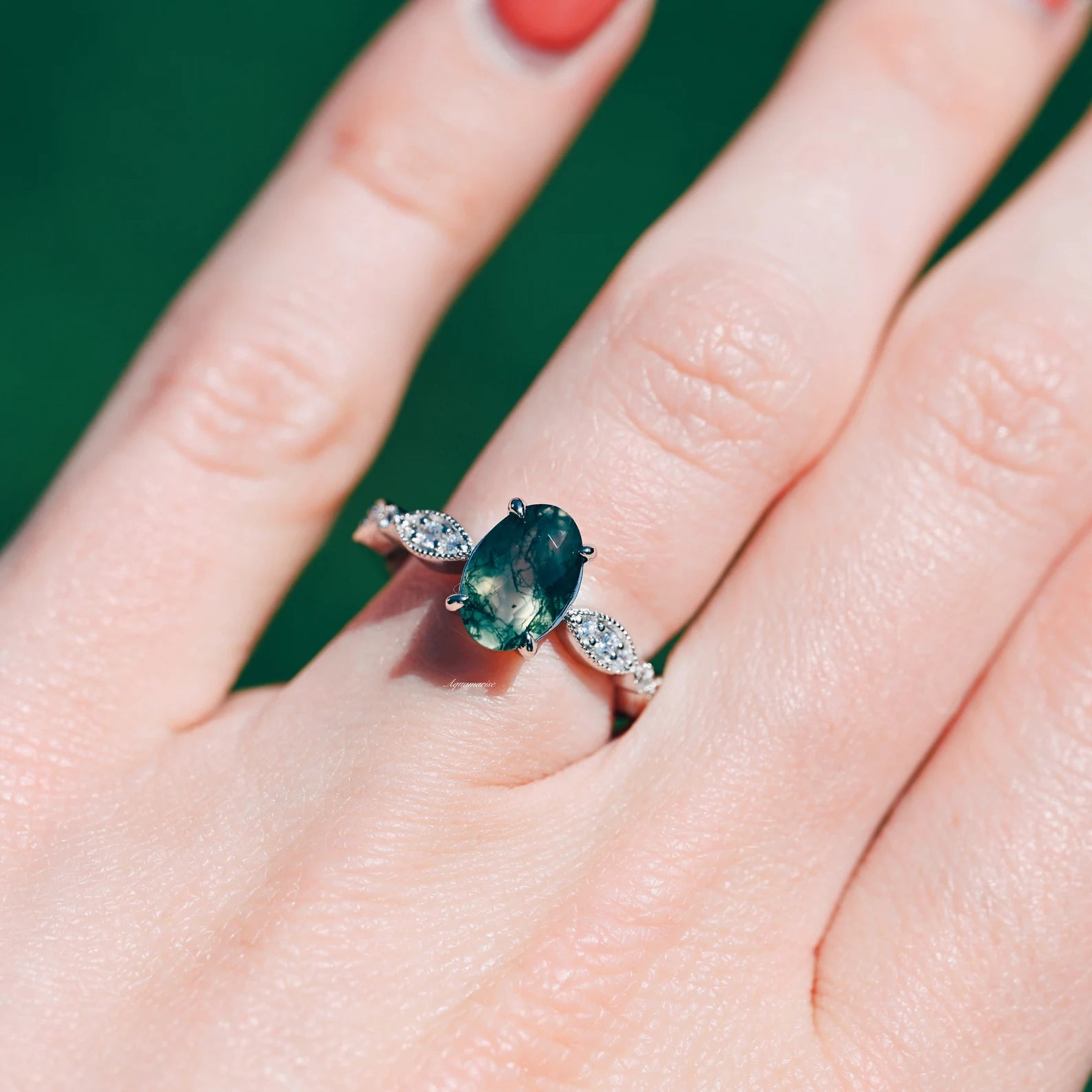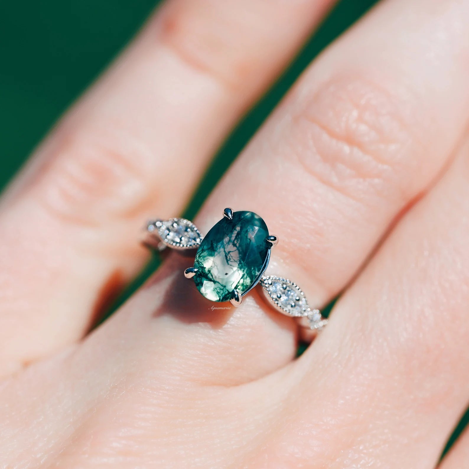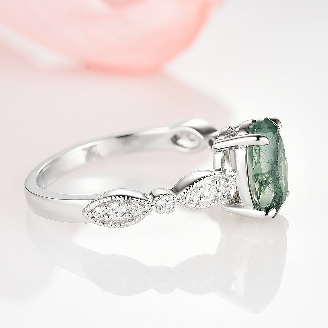 Kylie Art Deco Green Moss Agate Ring- Sterling Silver