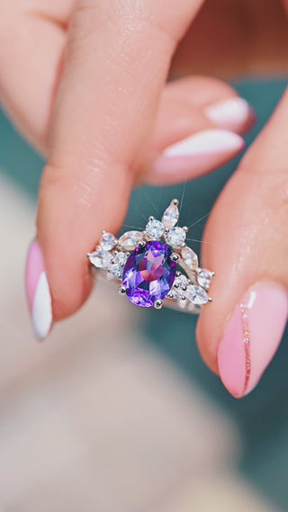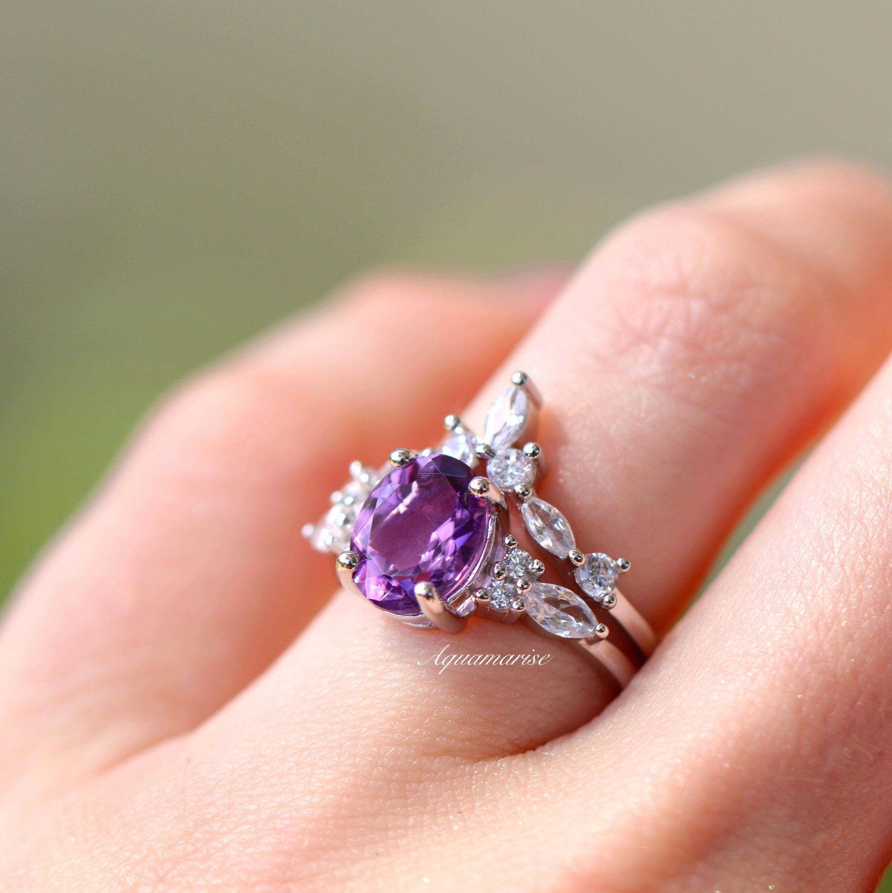 Add a touch of timeless elegance to your collection with this Oval Cut Amethyst Ring Set, crafted in 925 solid sterling silver with a radiant rhodium finish. This versatile set makes a beautiful engagement ring, promise ring, birthstone ring, or statement piece, designed to suit both everyday wear and special occasions.