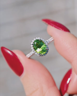 Elevate your jewelry collection with this gorgeous oval halo Peridot ring, designed to capture timeless elegance and vibrant beauty. Whether you’re celebrating an August birthday, marking a milestone, or simply treating yourself or a loved one, this ring is a perfect choice for any occasion.