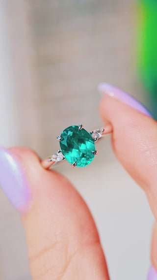 Oval Cut Paraiba Tourmaline Engagement Ring in Sterling Silver