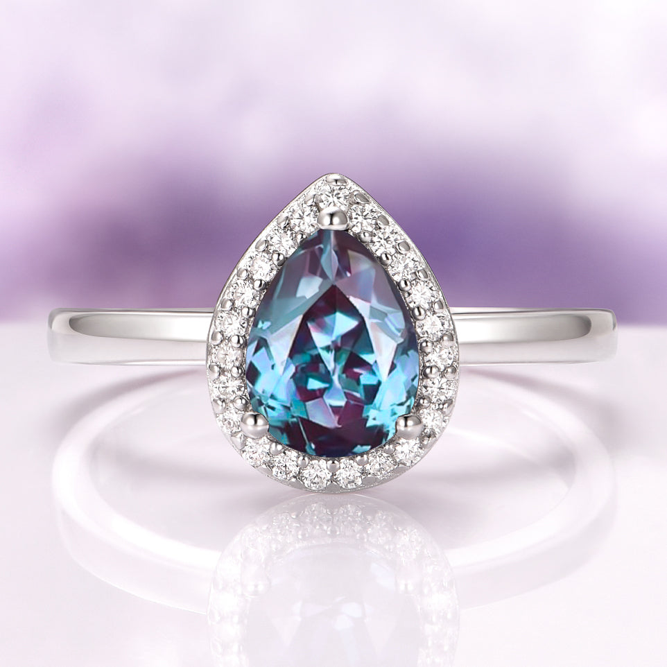 Center Stone: Pear Cut Alexandrite (Lab-Created)