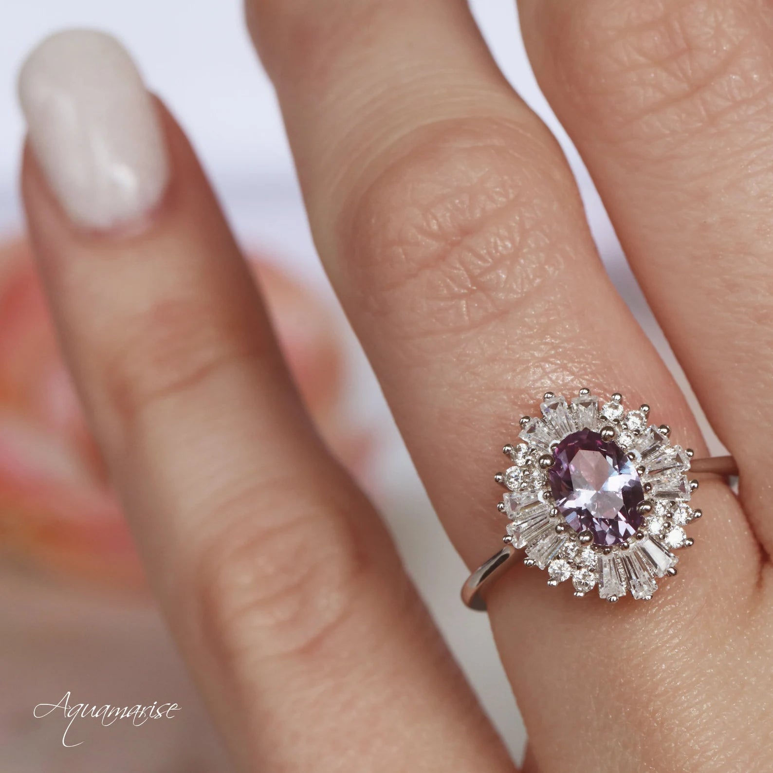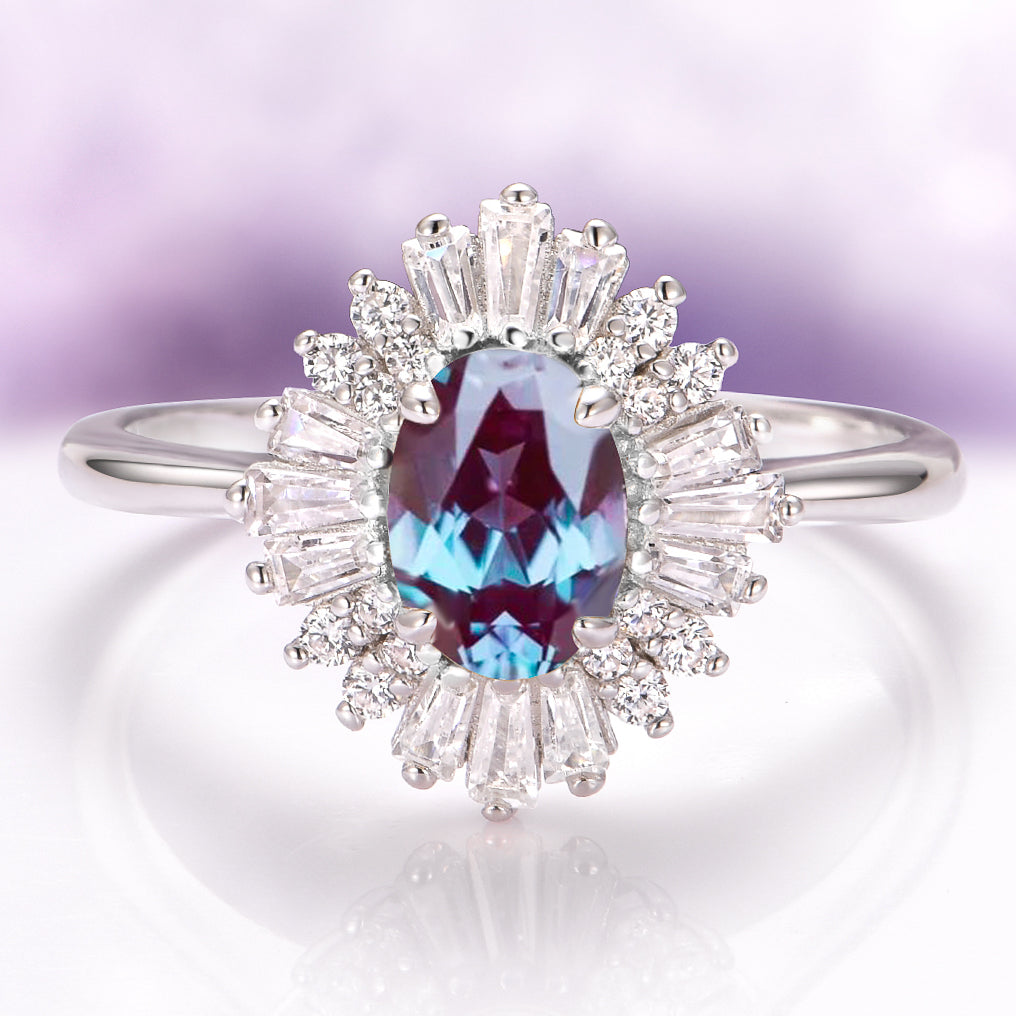 Victoria Art Deco Alexandrite Engagement Ring in Sterling Silver