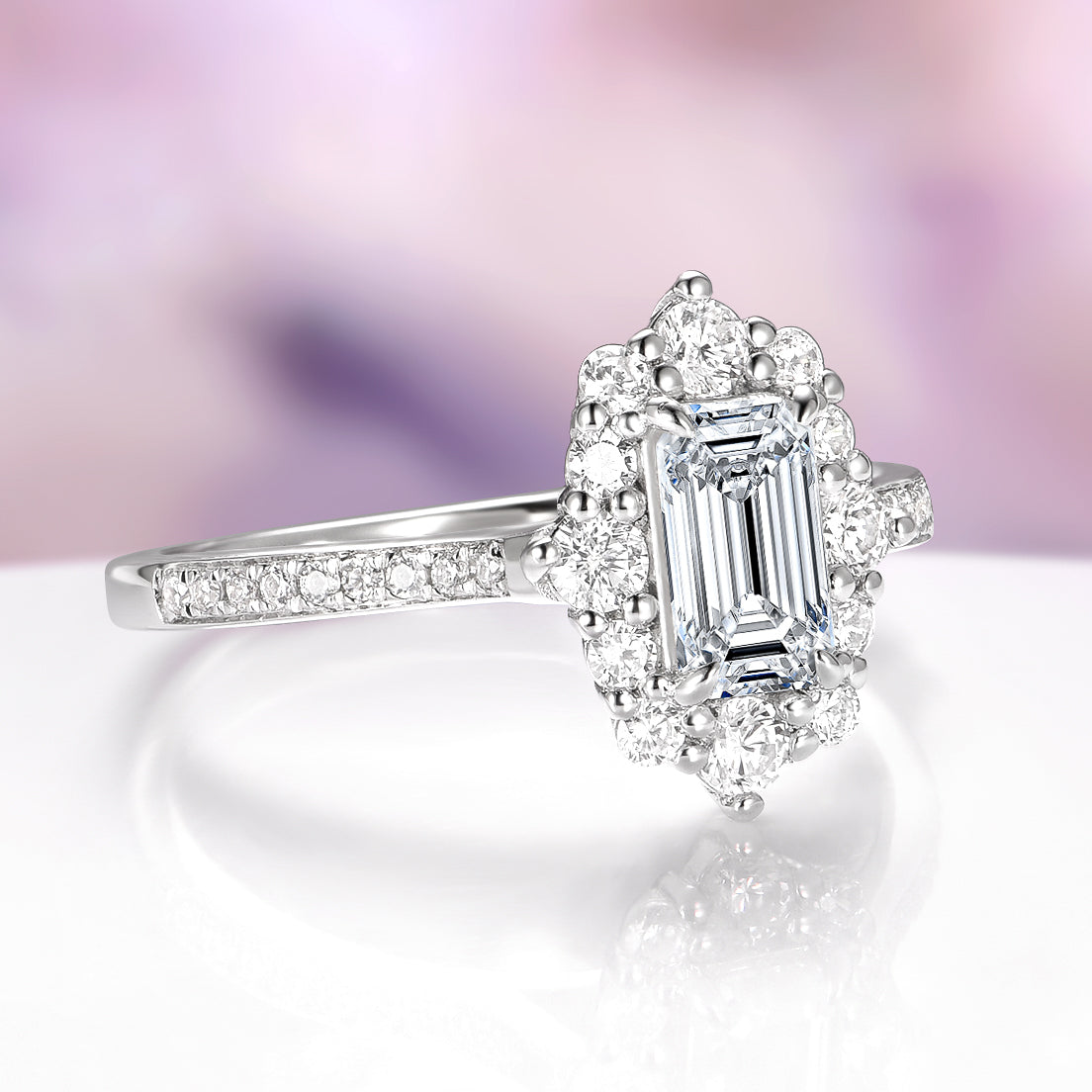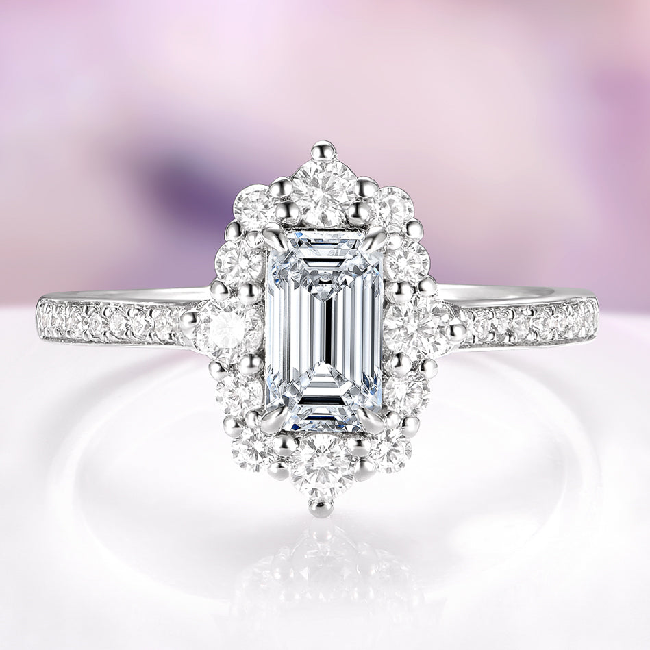 Emerald Cut Moissanite Engagement Ring in 14K White Gold