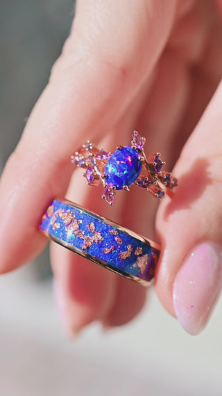 Starry Night Blue Fire Opal & Sapphire Ring in 14K Rose Gold Vermeil