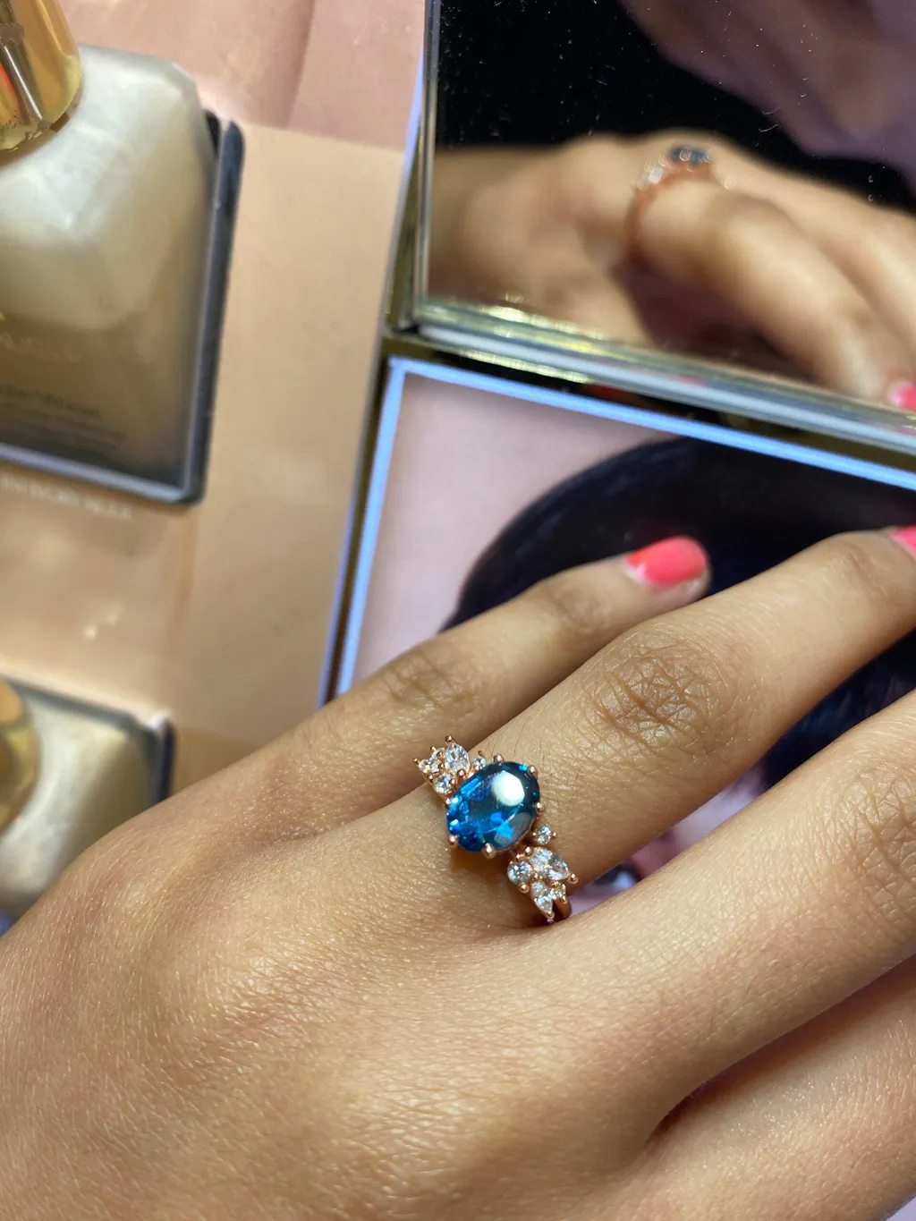 Lily London Blue Topaz Ring- 14K Rose Gold Vermeil