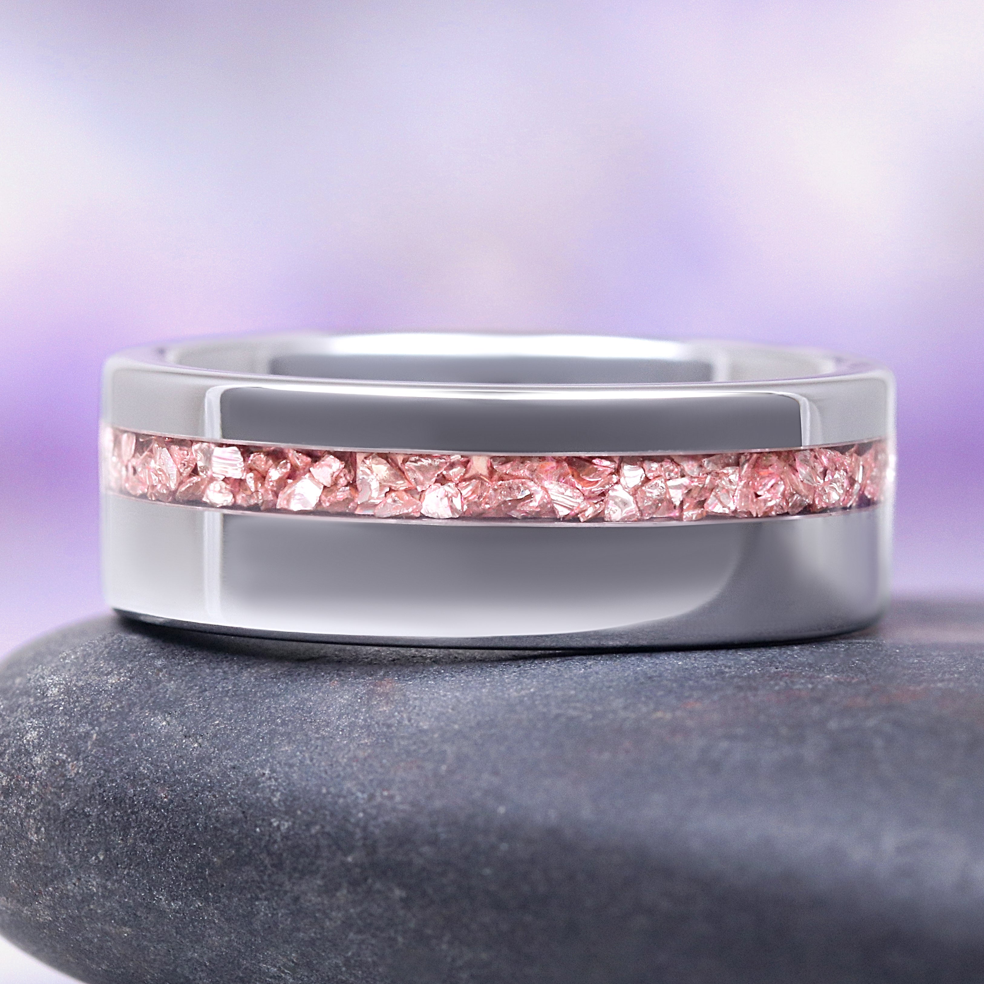► Material: Tungsten Carbide with Crushed Morganite Inlay