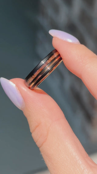 Solar Flare Orange Sandstone Wedding Band- 6MM Rose Gold/ Black Tungsten