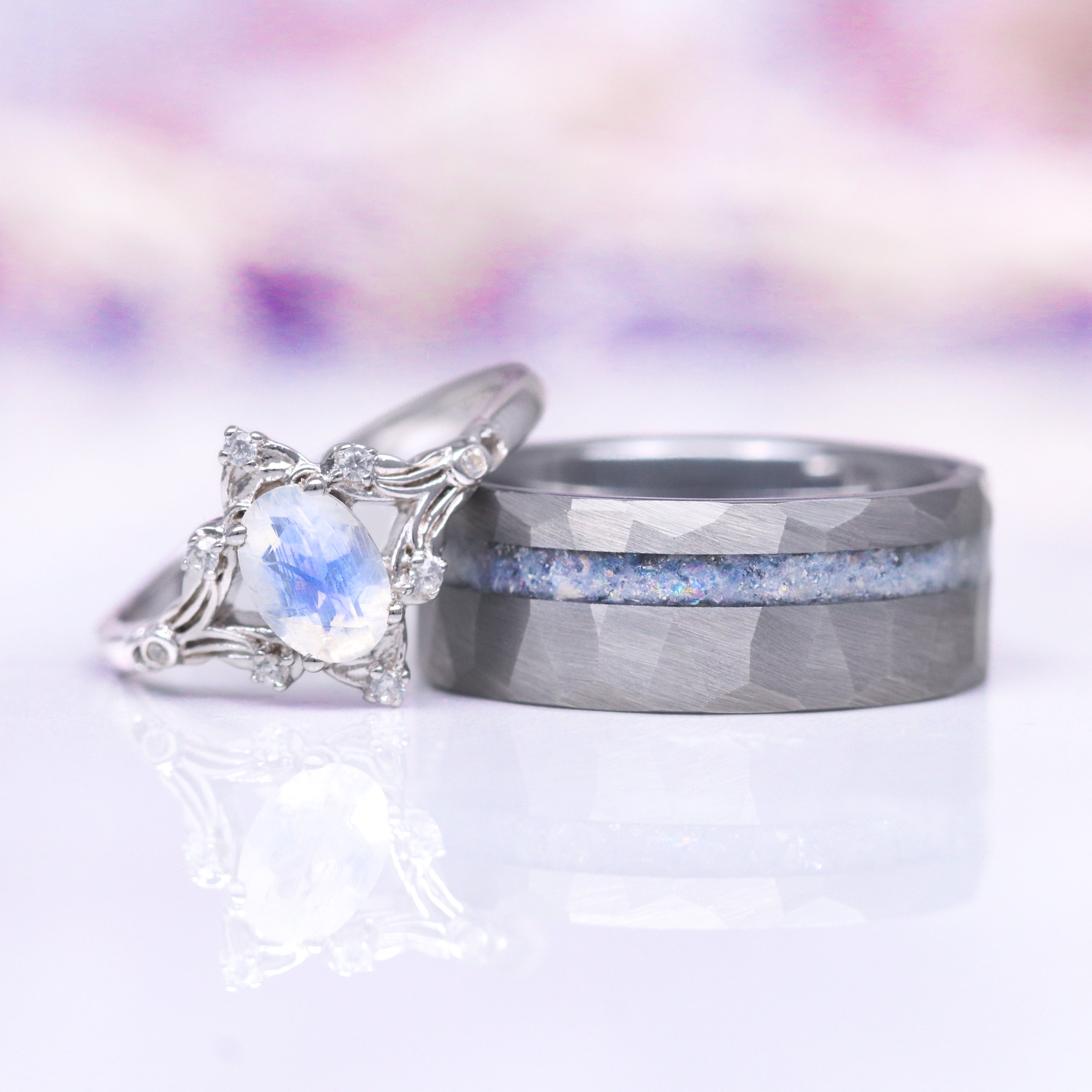 Crushed Moonstone Wedding Band- 8MM Tungsten