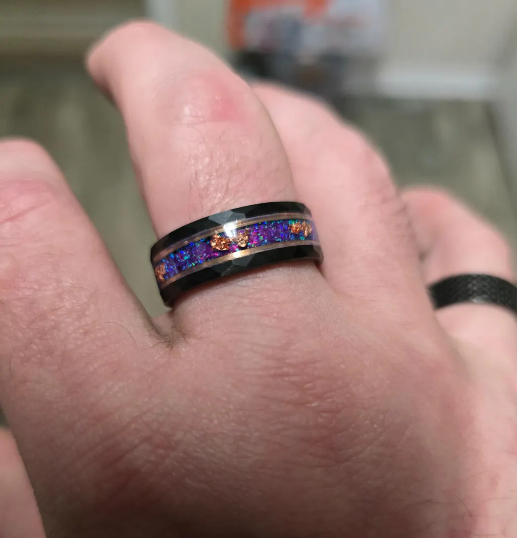 My husband loves it! He needed a nice wedding ring to wear for fancy occasions (instead of his everyday silicone rings) and this was the perfect one for him. My wedding set has his birthstone and so now his wedding ring has mine. It's perfect