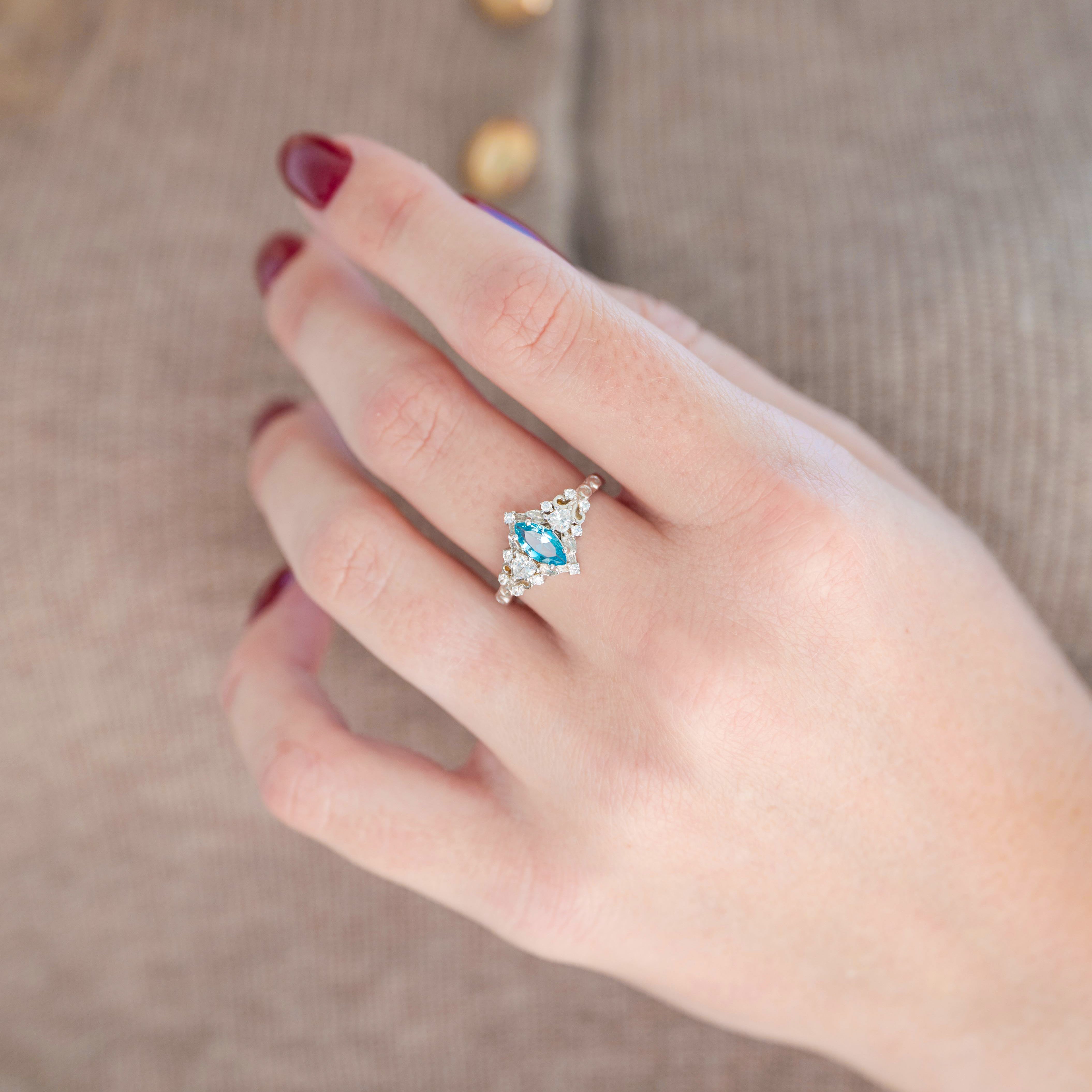 Elain Swiss Blue Topaz Fairy Leaf Ring in Sterling Silver