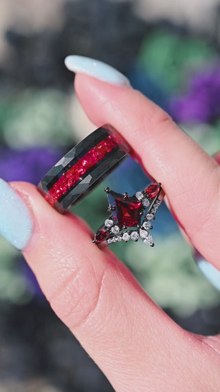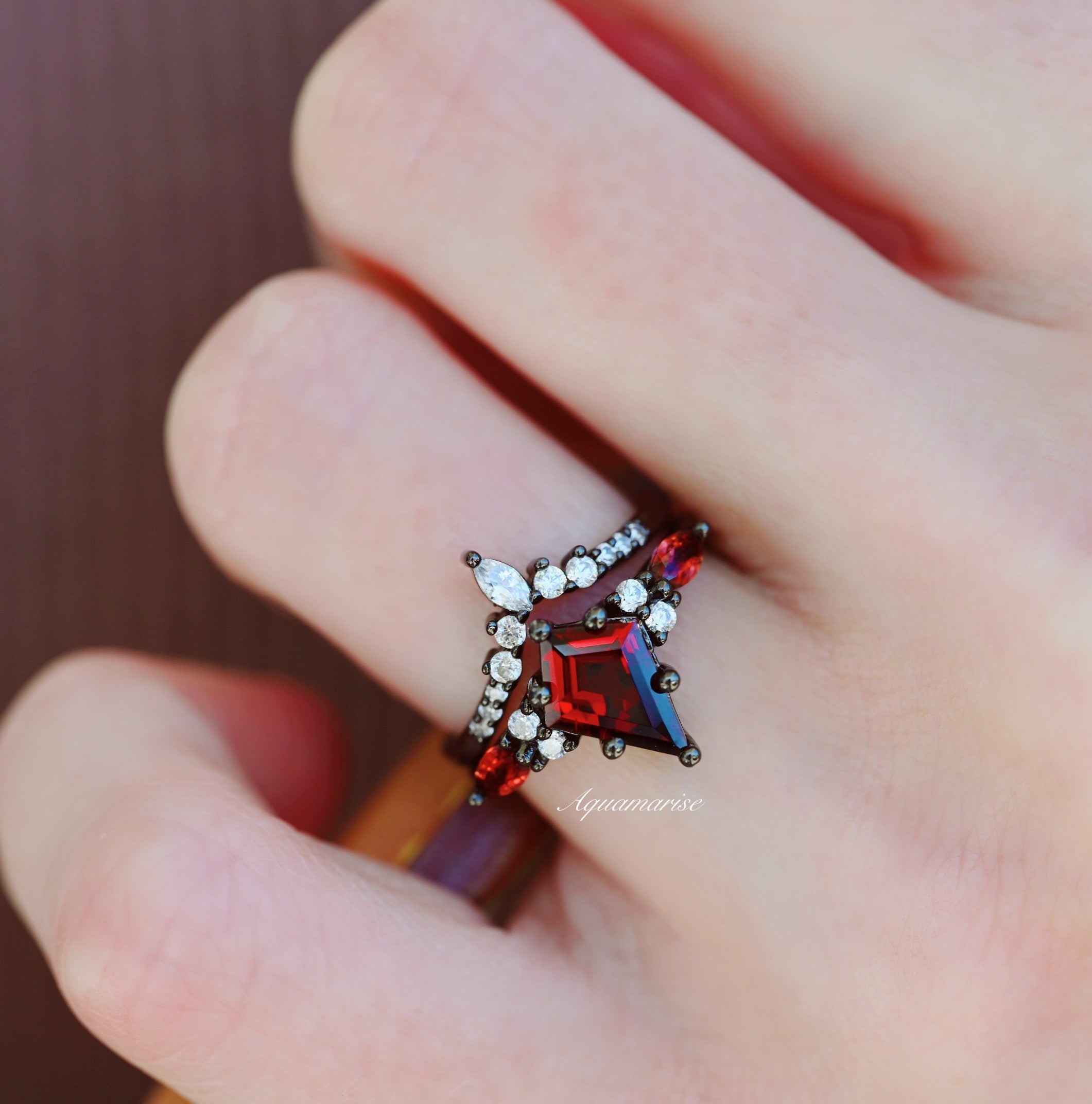 Skye Kite® Natural Red Garnet Kite Engagement Ring Set in Black Rhuthenium