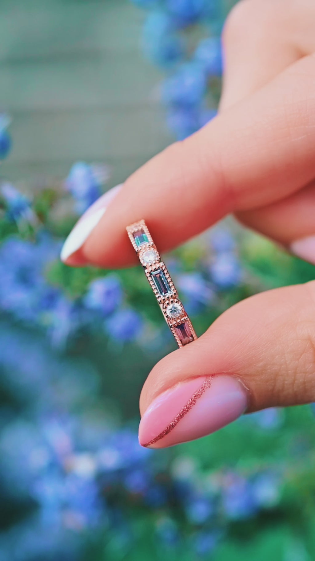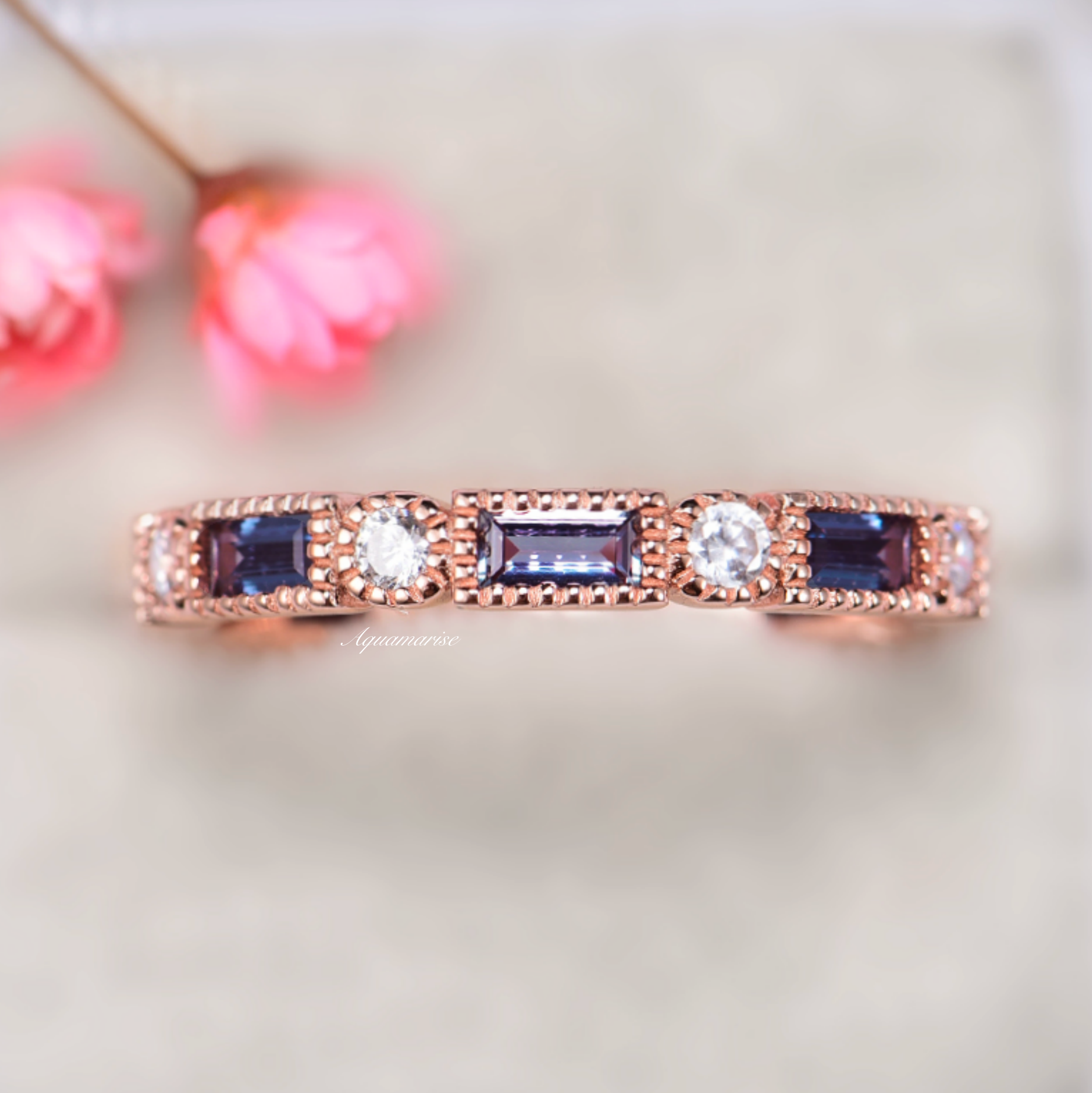 Gorgeous vintage inspired alexandrite ring is made of 14K rose gold vermeil over 925 sterling silver, making a simple but elegant statement piece. This ring is perfect to wear as engagement ring, promise ring, birthstone ring, or statement ring. Lightweight and minimalist.