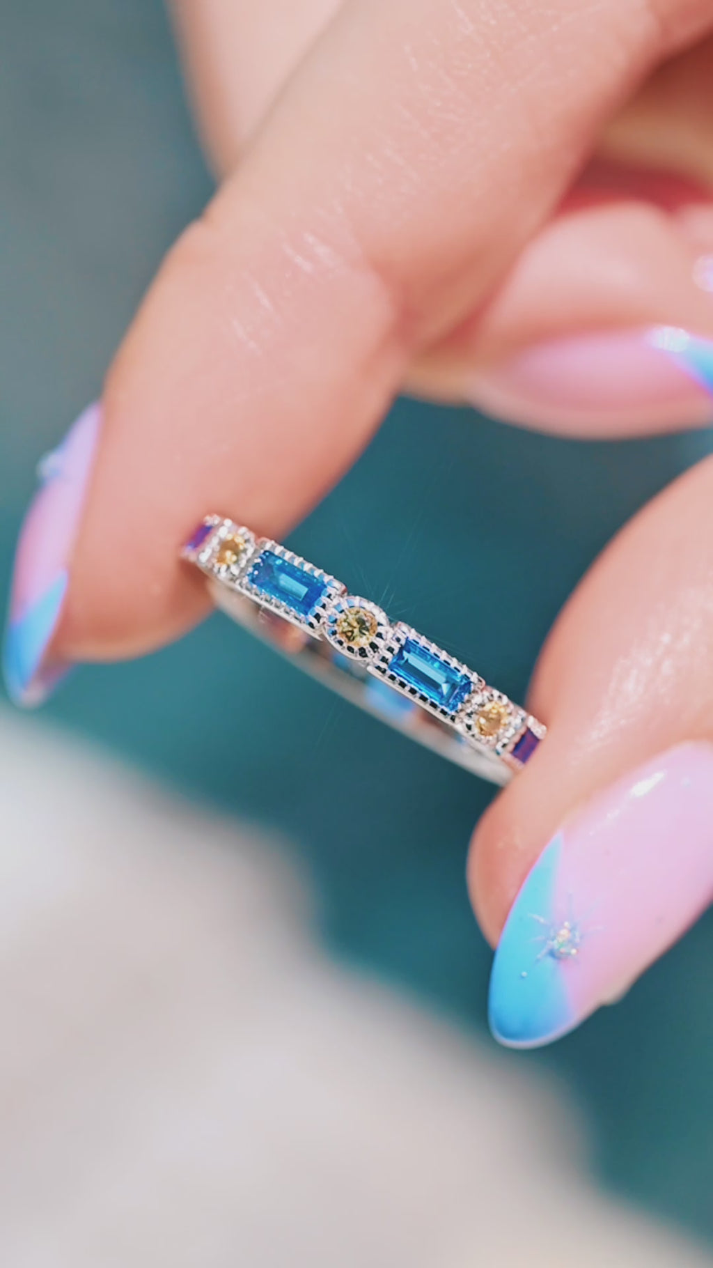 This ring is perfect! Nice cut stones that are vibrant. The band is not cheap and thin. It’s beautiful!