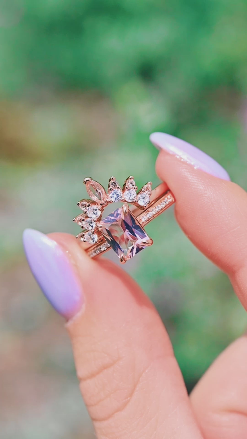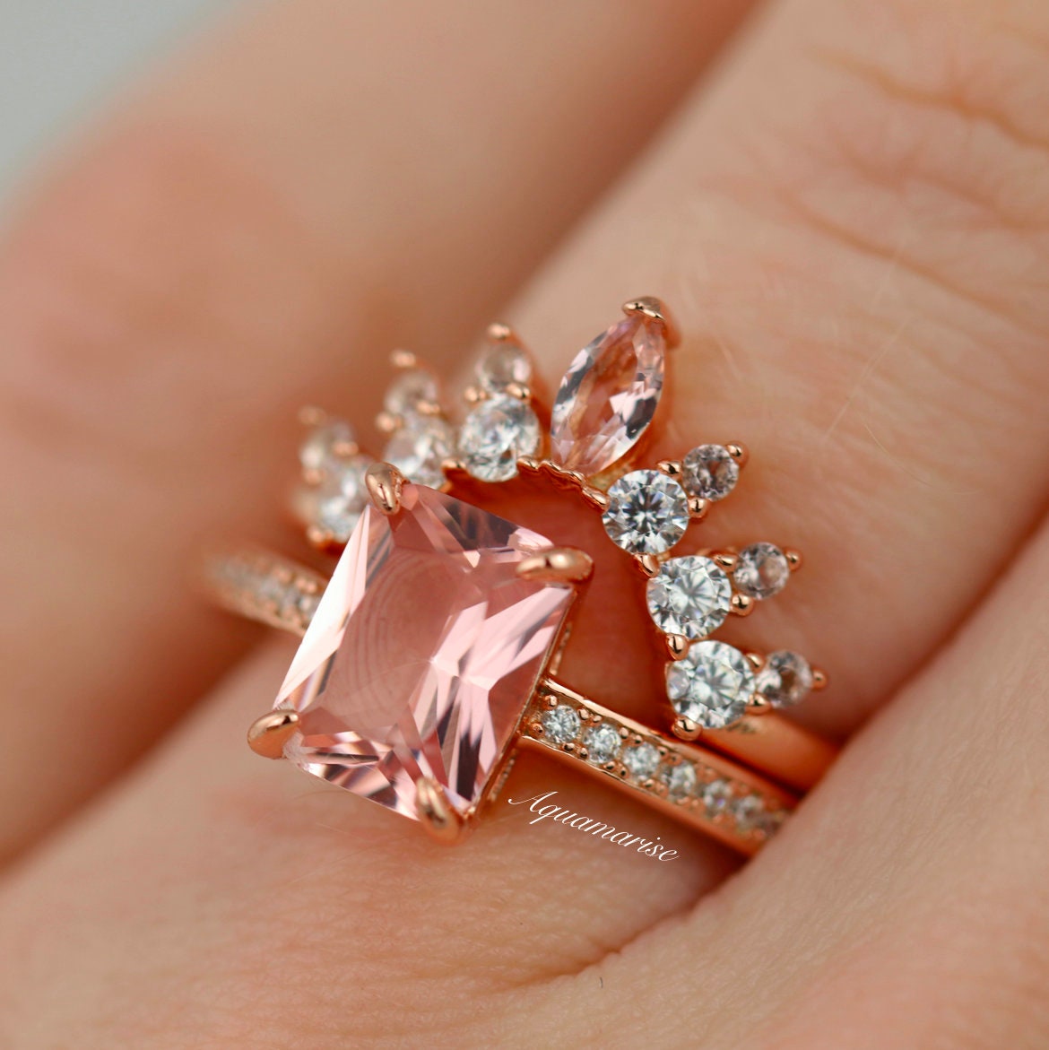 ►Accented with natural morganite and your choice of moissanite or natural diamonds. Please select your preferred accent stone option from the drop-down menu.