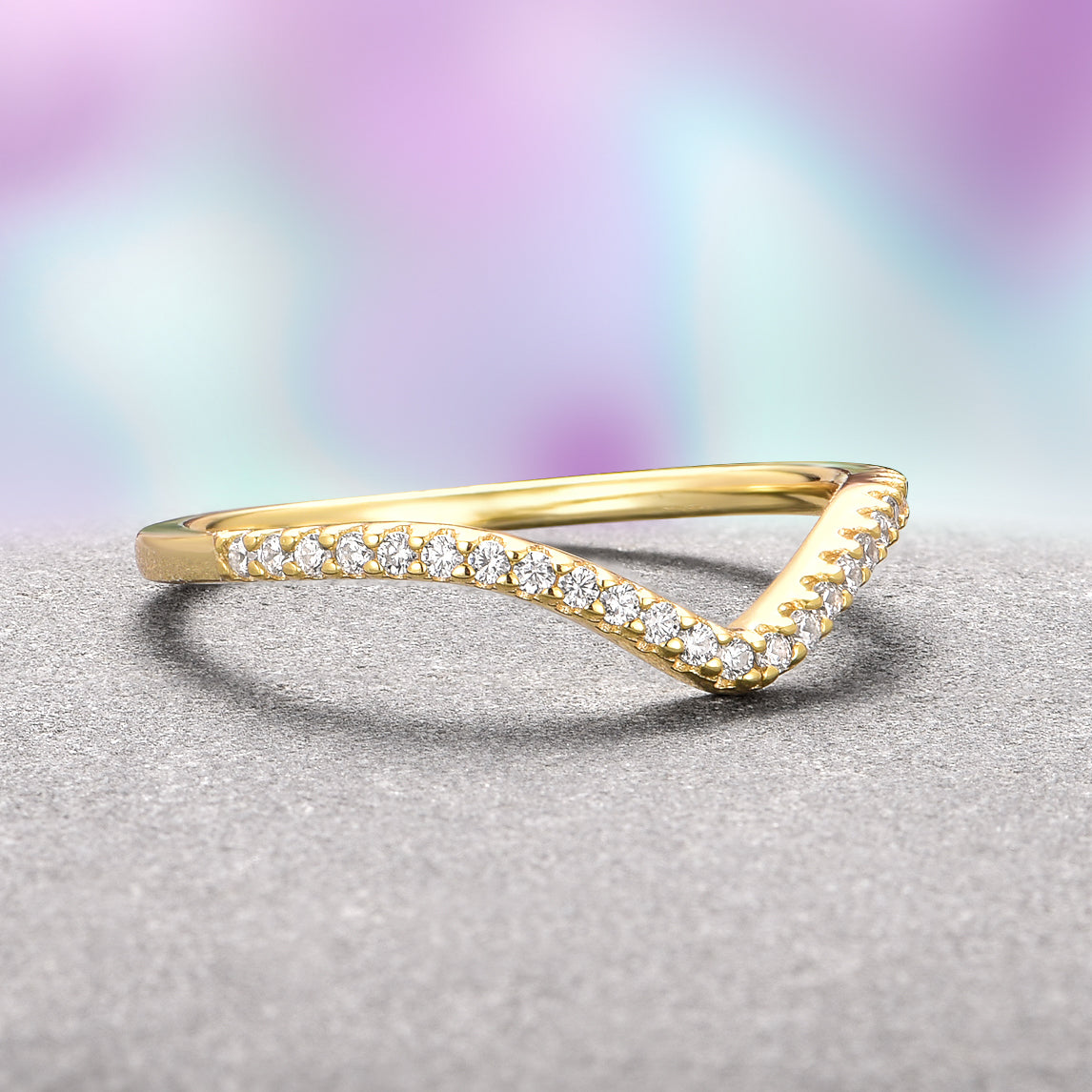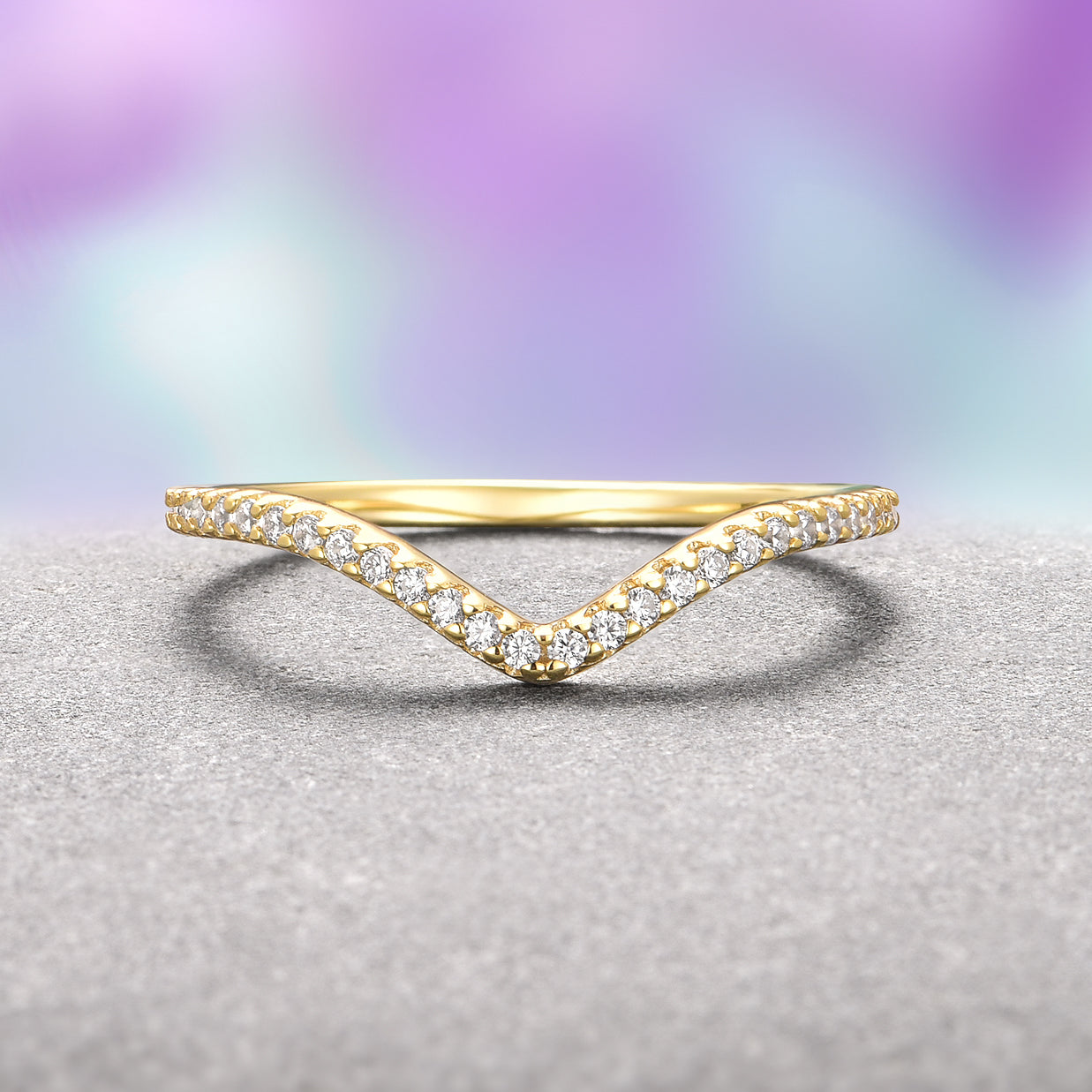 Chevron Stacking Wedding Band- 14K Solid Yellow Gold