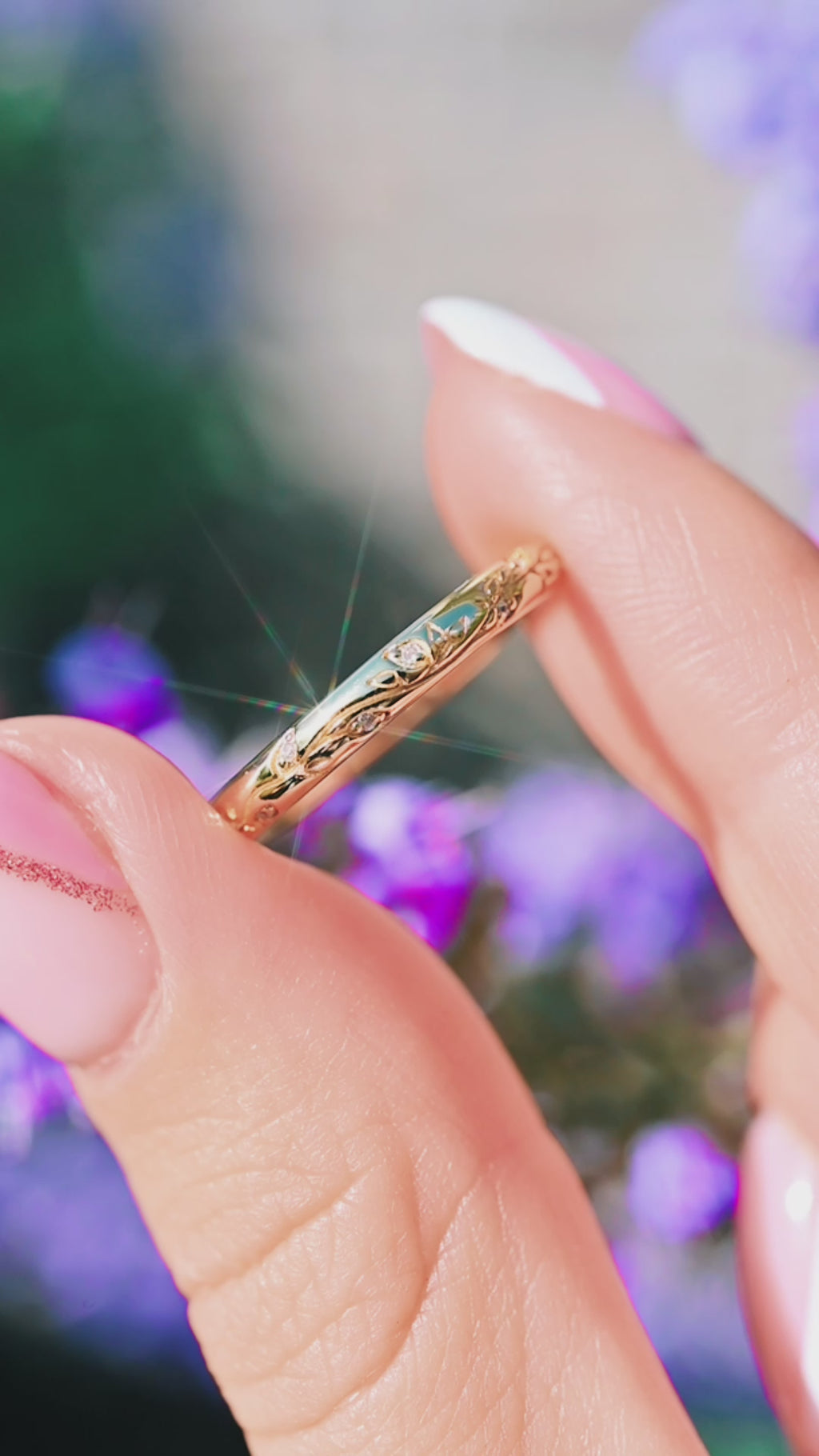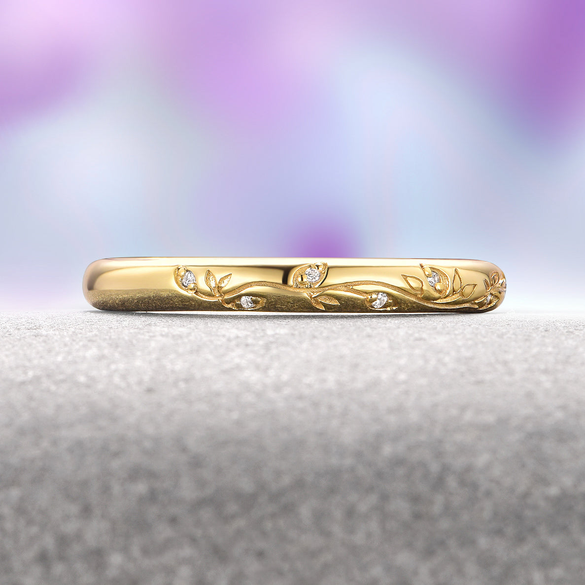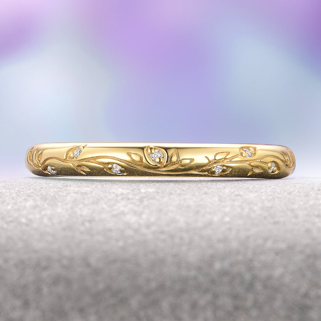 Diamond Leaf Wedding Band in 14K Solid Yellow Gold