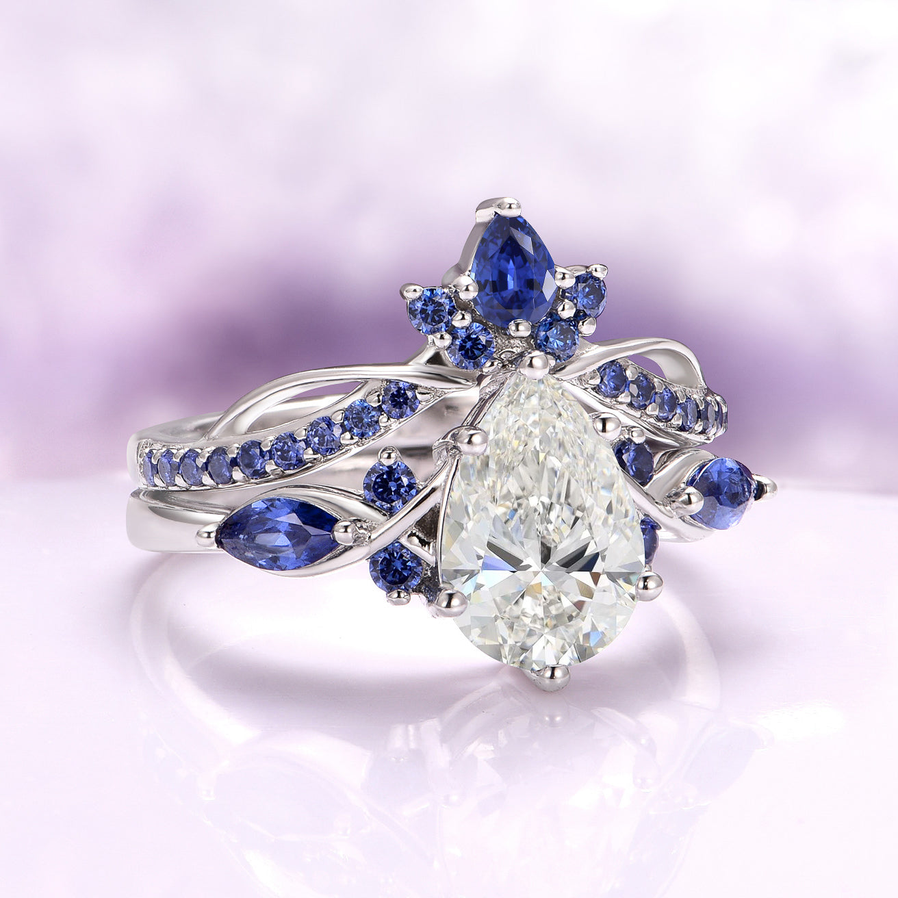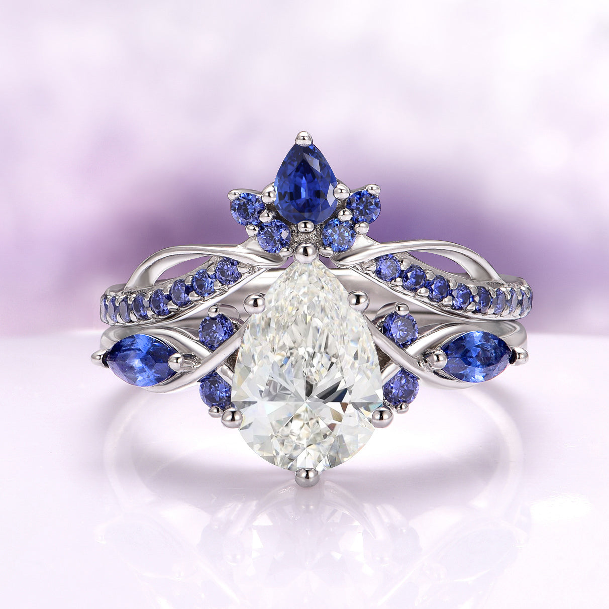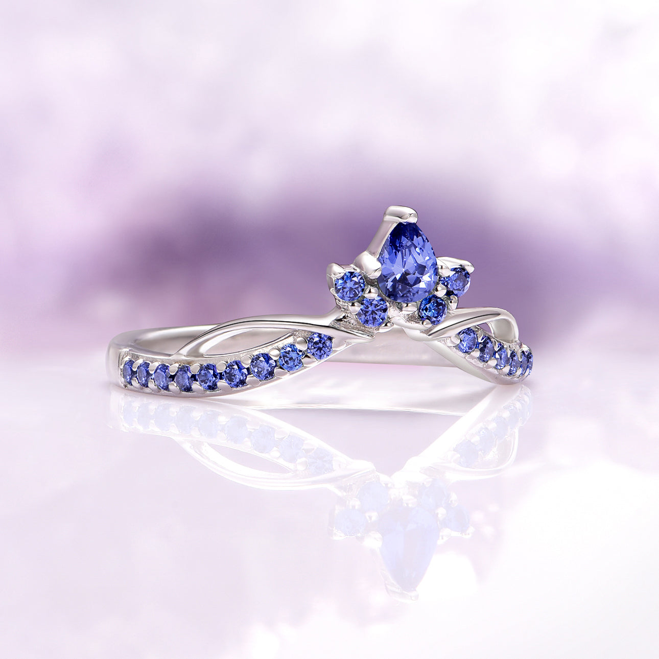 Feyra Blue Sapphire Crown Wedding Band in 14K White Gold