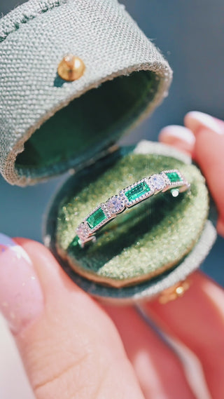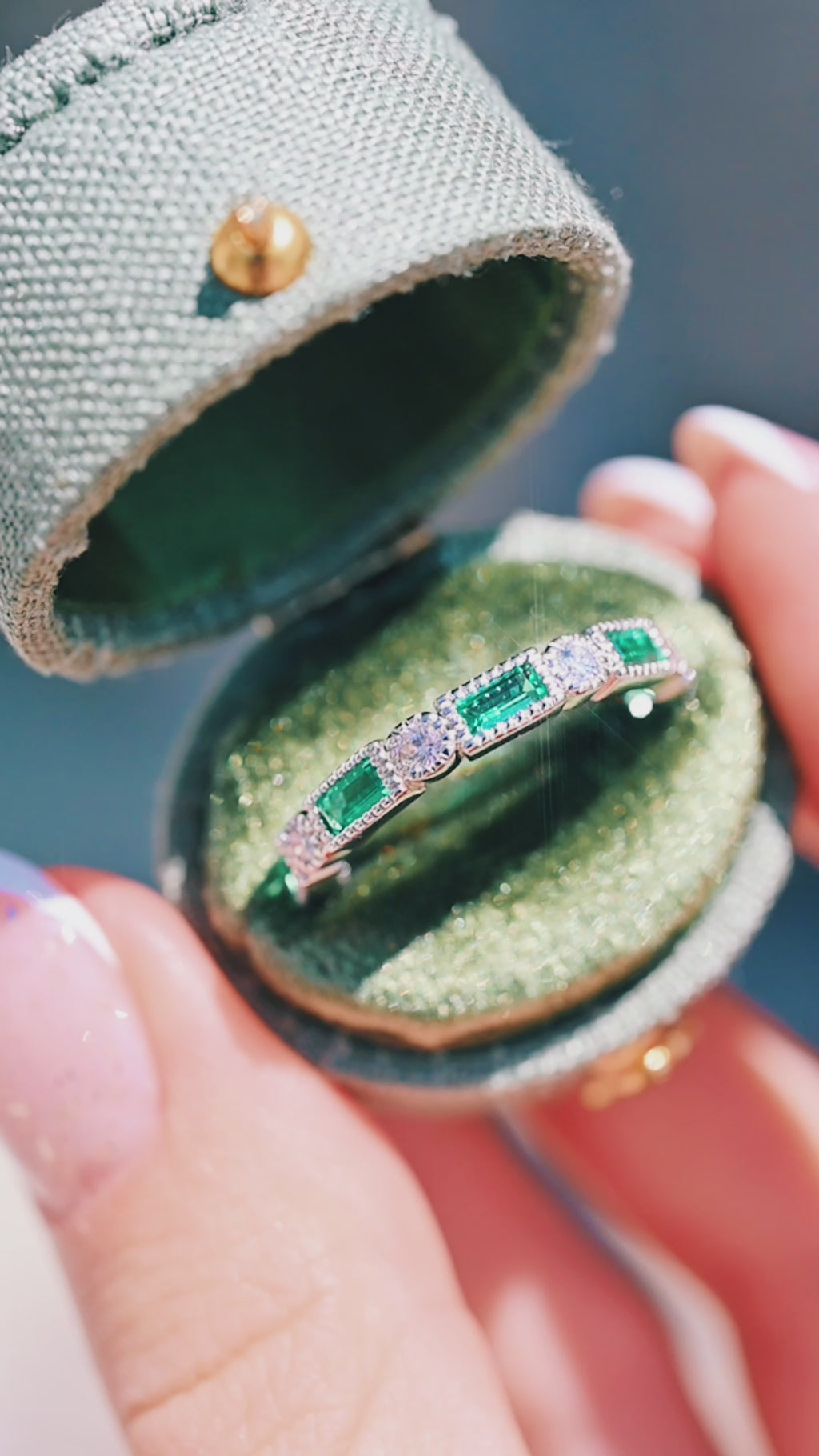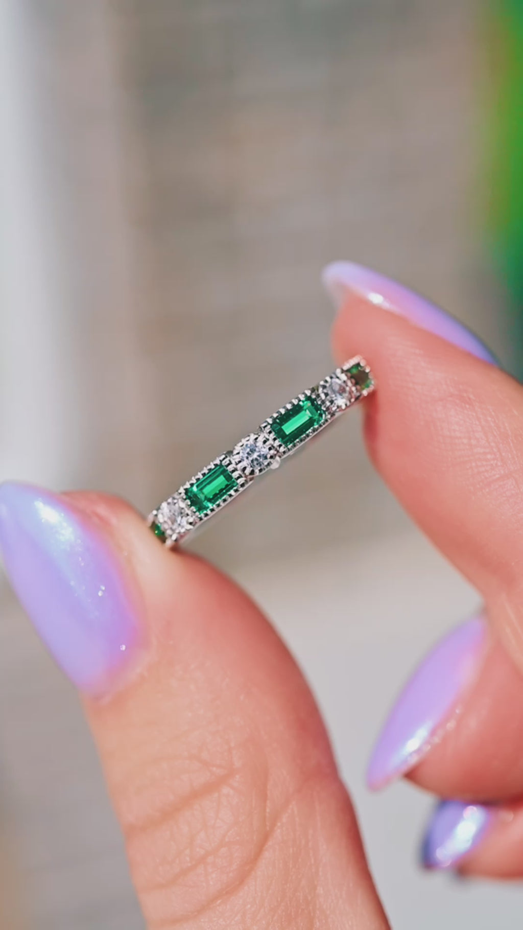 Ari Art Deco Emerald Wedding Band- Sterling Silver