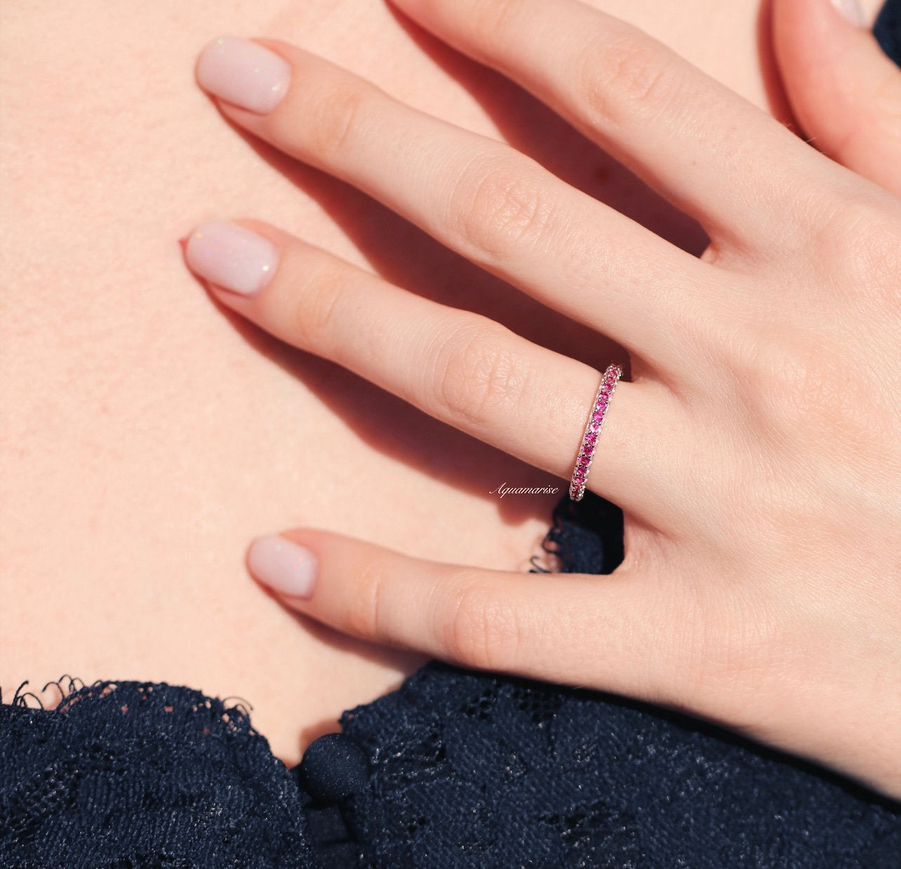 Minimalist Ruby Band in Sterling Silver (2mm)