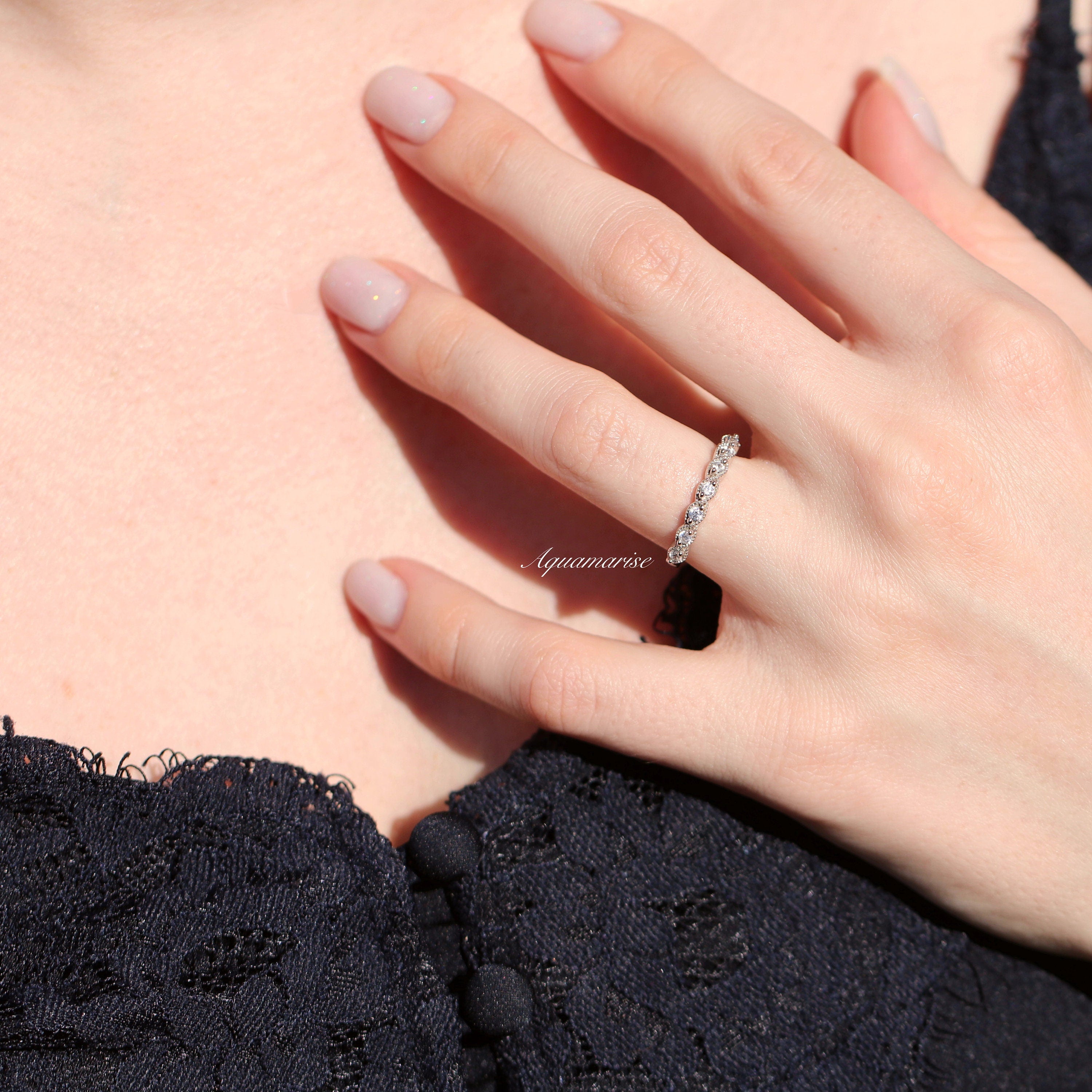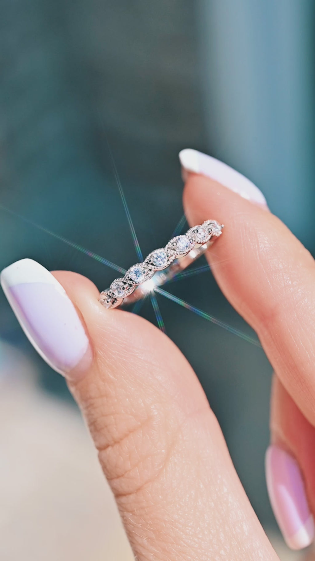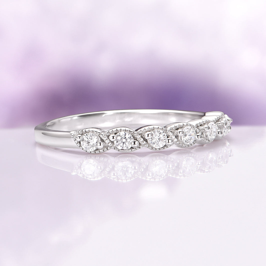 White Sapphire Vintage Wedding Band in Sterling Silver