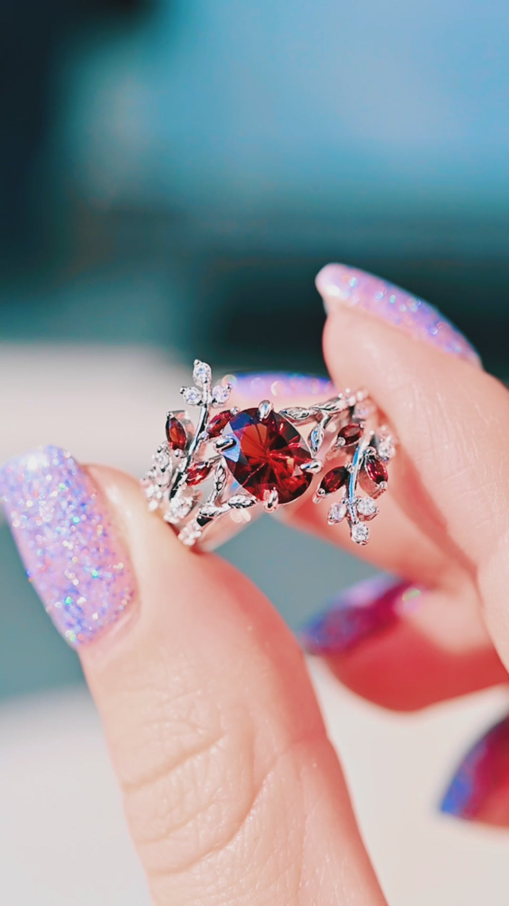 Add a touch of natural elegance with this Leaf Wedding Band, handcrafted in 14K solid white gold. Inspired by the beauty of nature, this enchanting ring features graceful leaf and vine motifs accented with deep red natural garnets and brilliant moissanite. Each gemstone is meticulously hand-set to create a warm, organic flow that symbolizes passion, strength, and everlasting love.