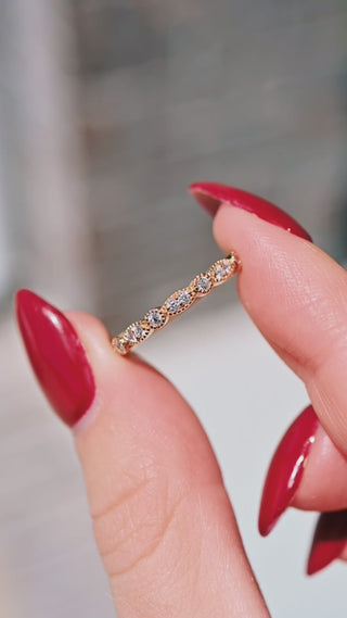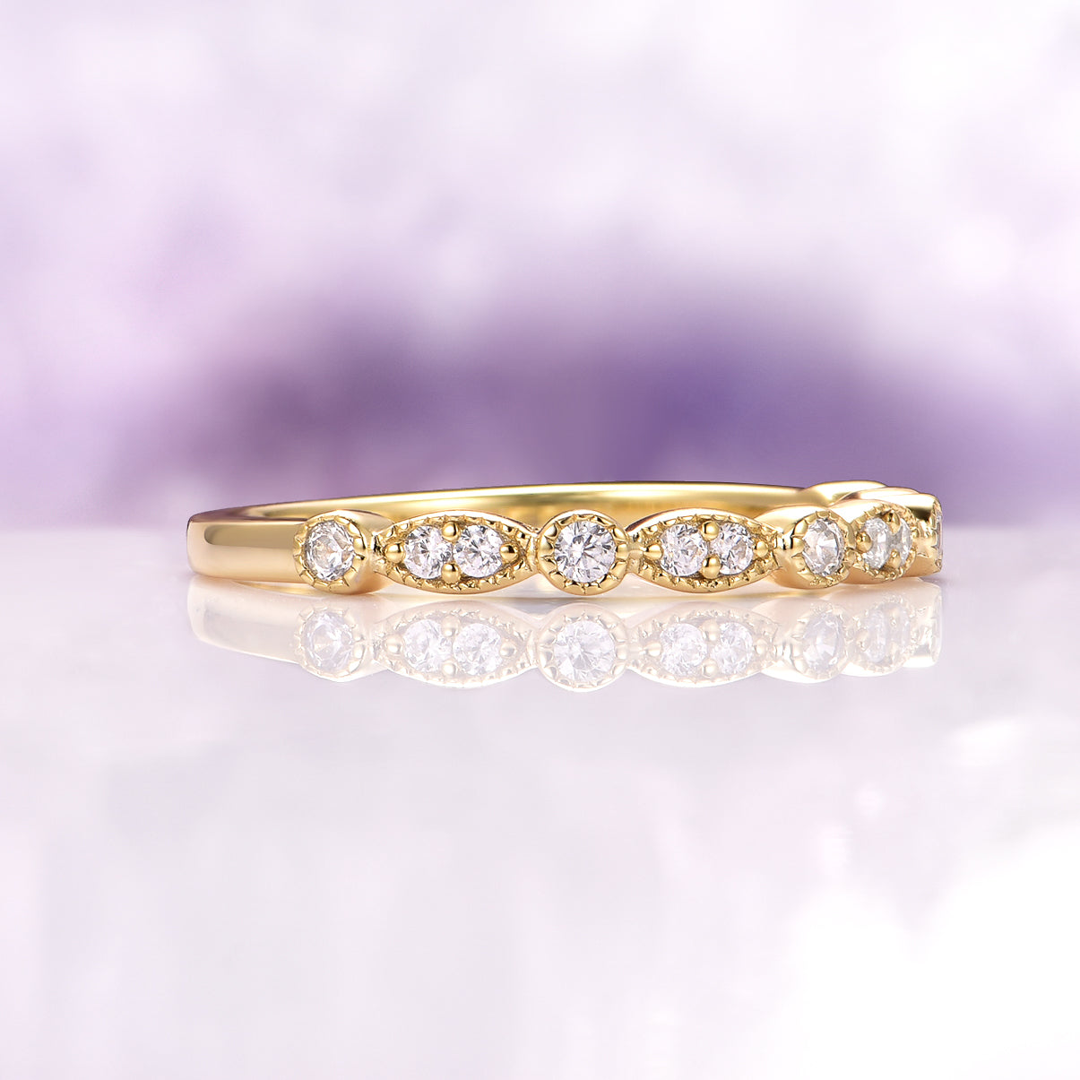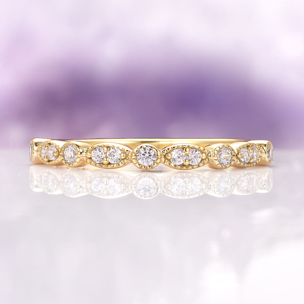 Elevate your wedding or stacking set with this beautifully handcrafted Art Deco milgrain wedding band. Inspired by vintage elegance, this band features intricate milgrain detailing and shimmering simulated diamonds, making it a timeless piece for any special occasion.