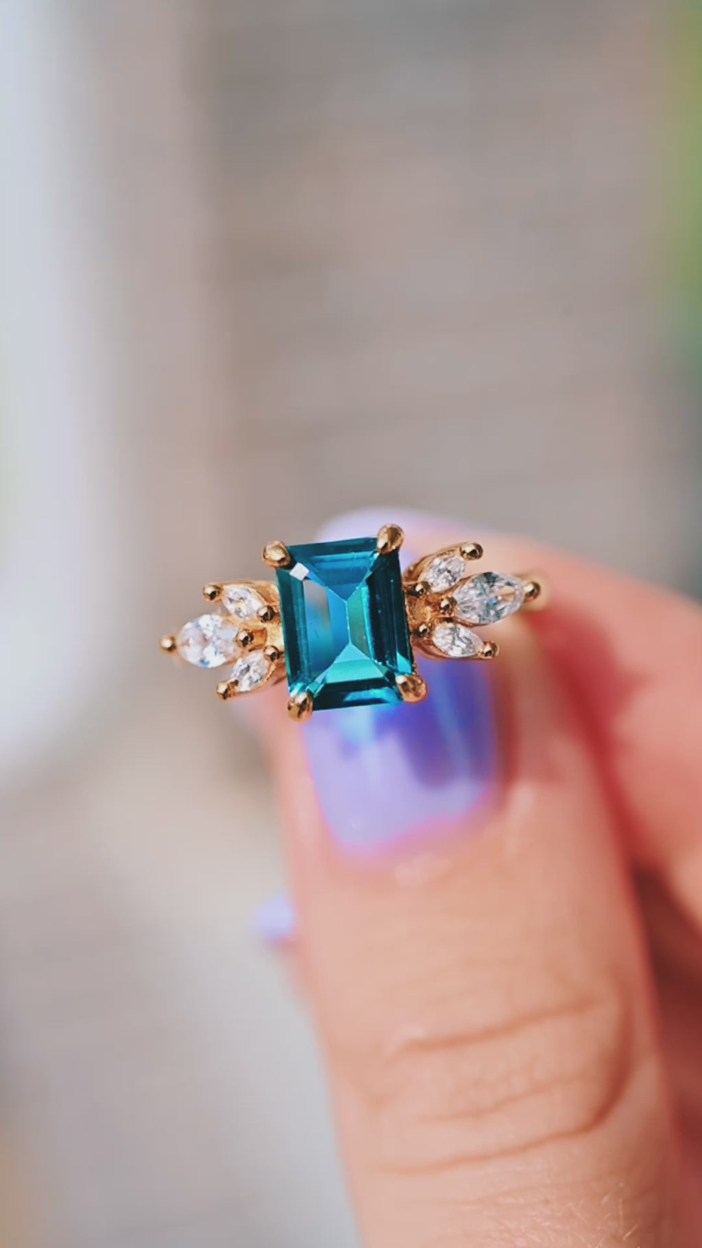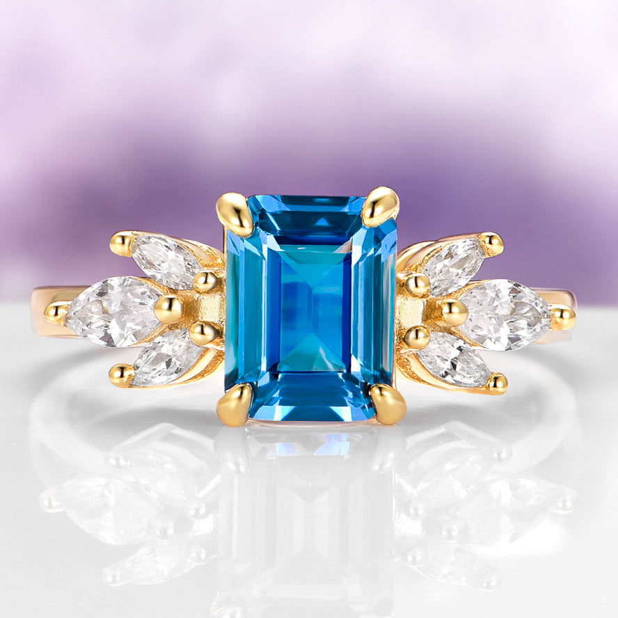 Capture timeless elegance with this Vintage-Inspired London Blue Topaz Ring, featuring a deep ocean-blue gemstone framed by an Art Deco-inspired design. The radiant emerald-cut topaz reflects sophistication and charm, while sparkling simulated diamond accents enhance its vintage allure.