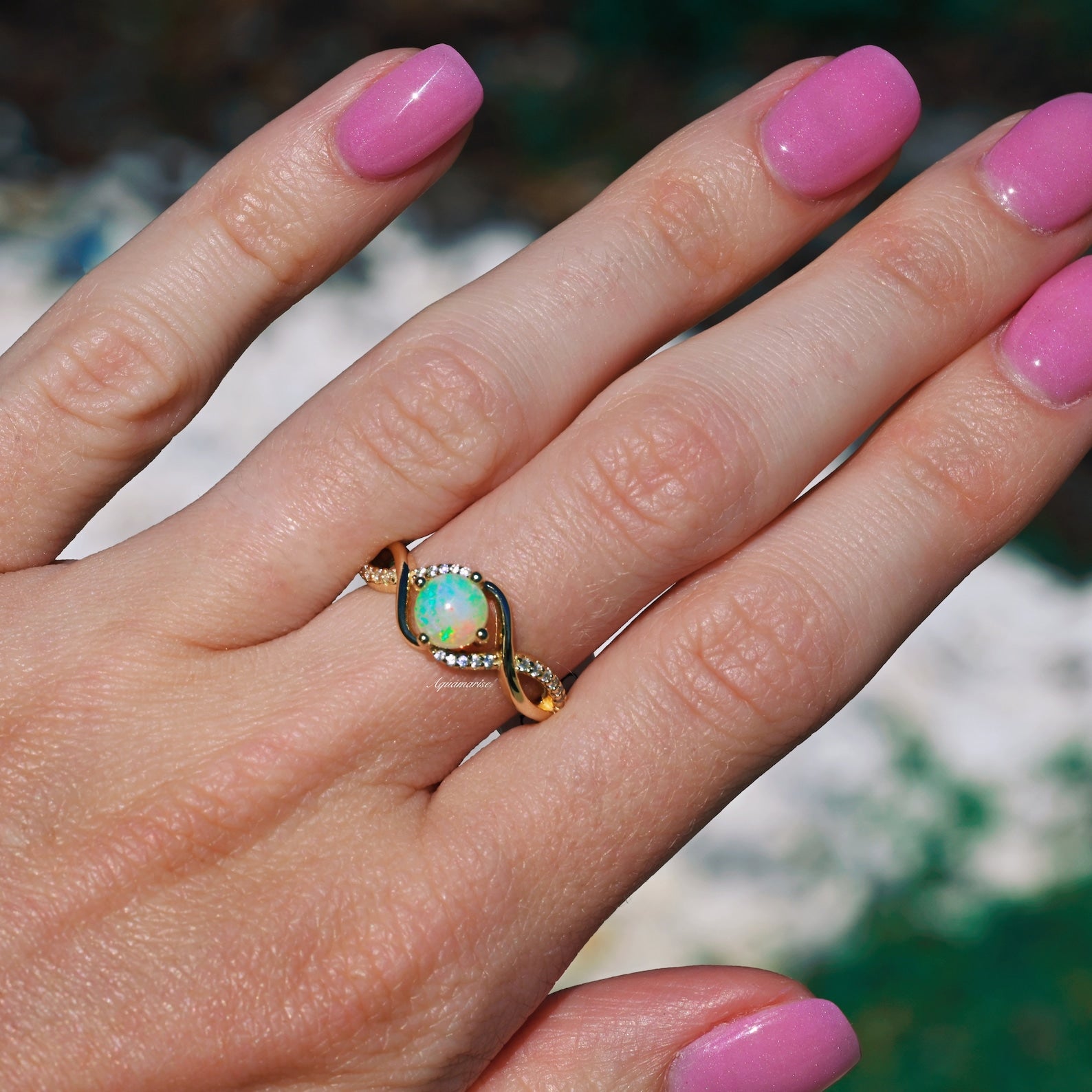 Perfect as a statement piece, promise ring, or nature-inspired engagement ring, this opal ring radiates vintage charm and modern elegance.