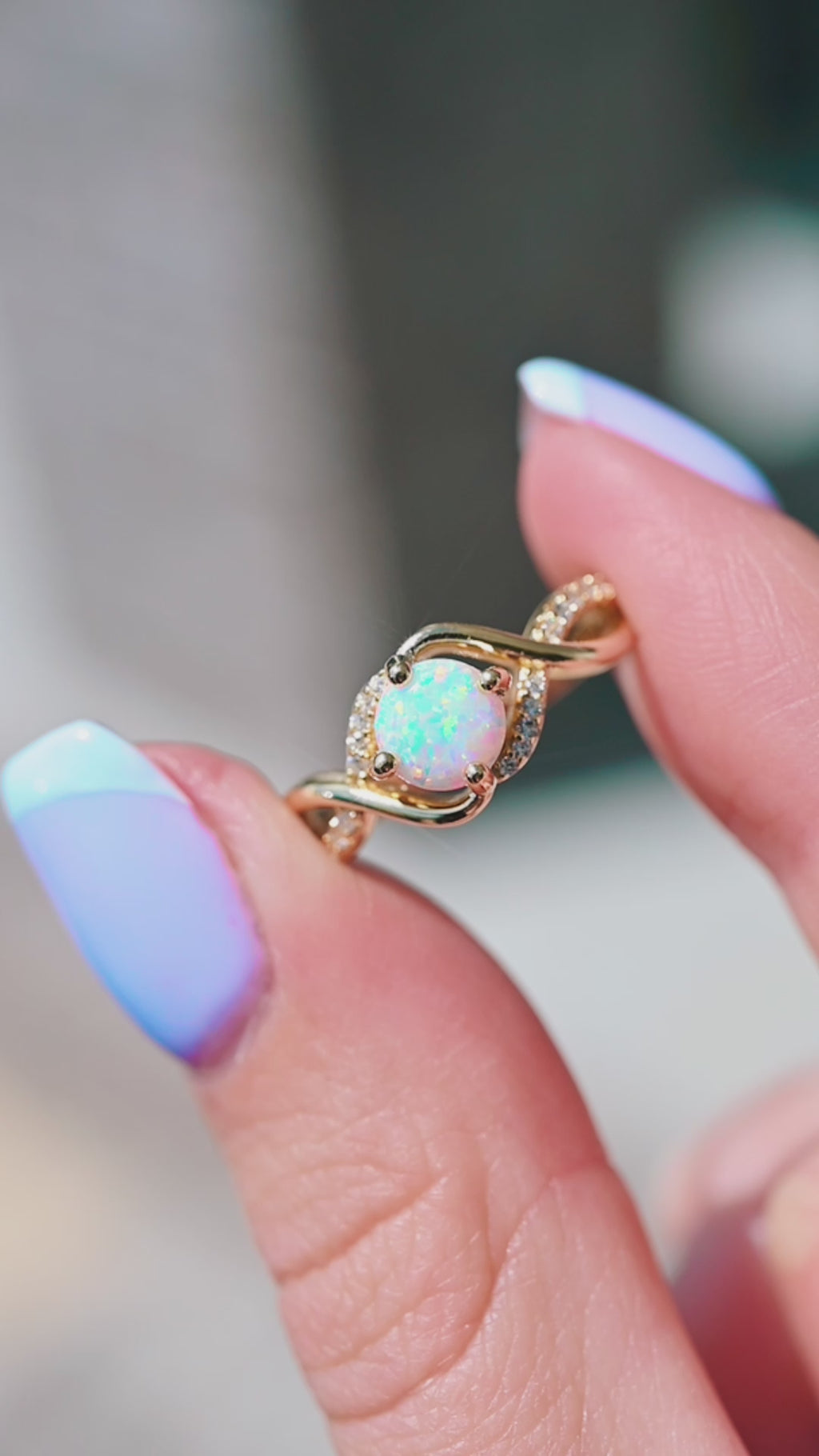 The opal, celebrated as October’s birthstone, symbolizes hope, purity, and truth. Ancient legends speak of opals as stones of prophecy and divine light. Each gem is unique, displaying shifting hues from subtle pastels to a rainbow of colors, ensuring that every ring is one of a kind.