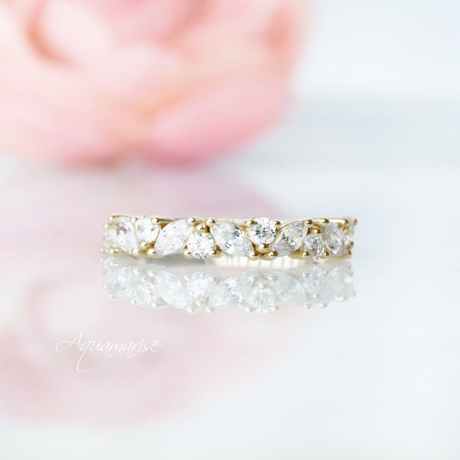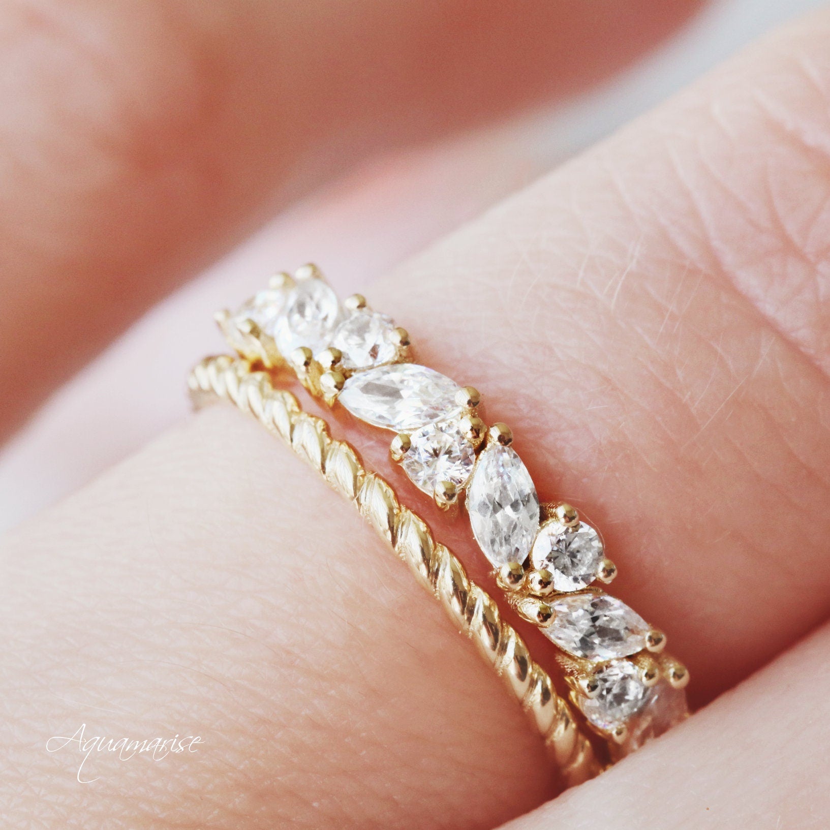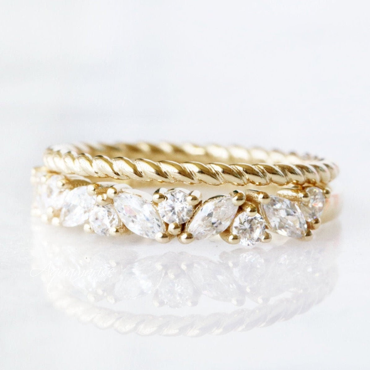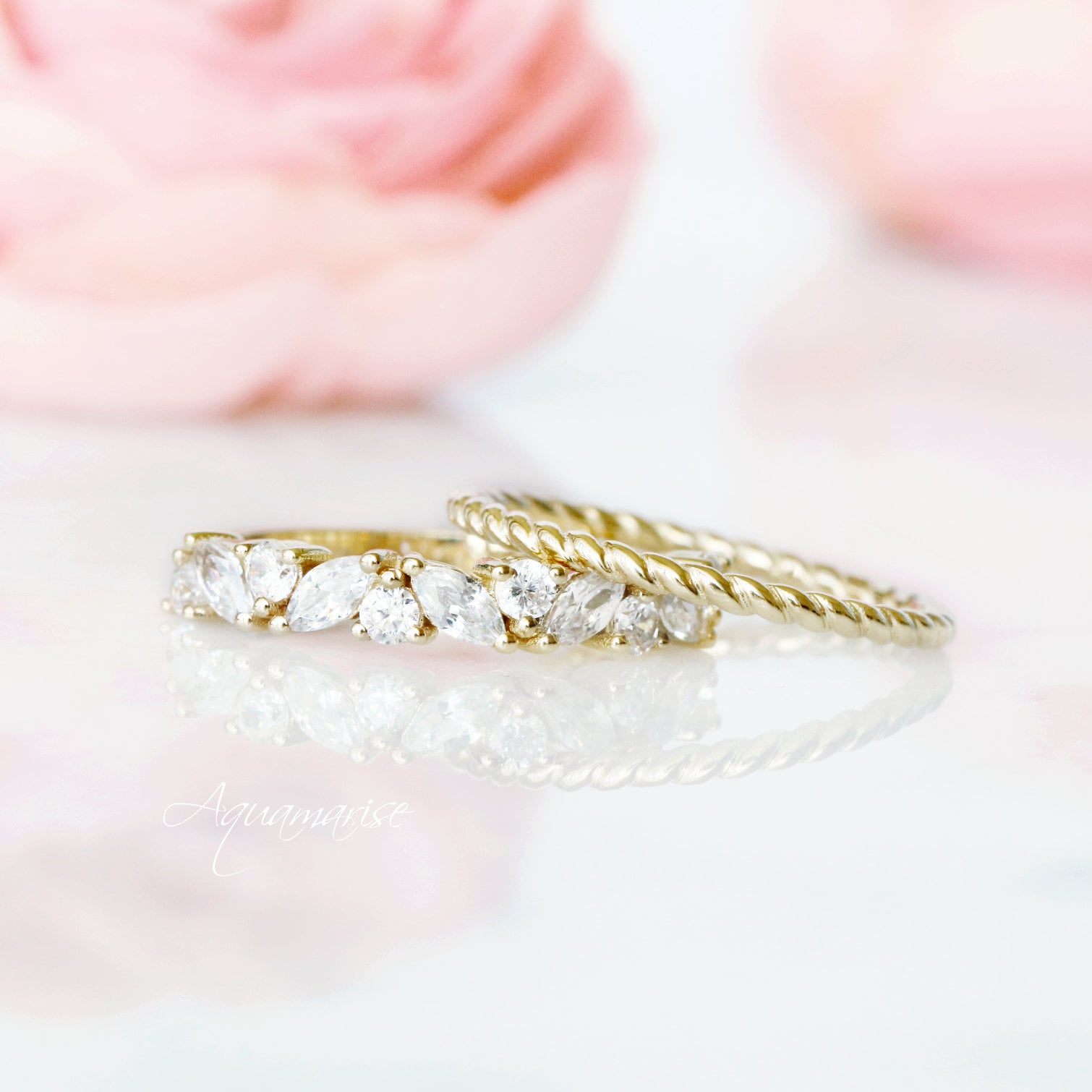 Beautiful ring set. Stones sparkle. Gold shines. Great addition to my wedding ring stack.