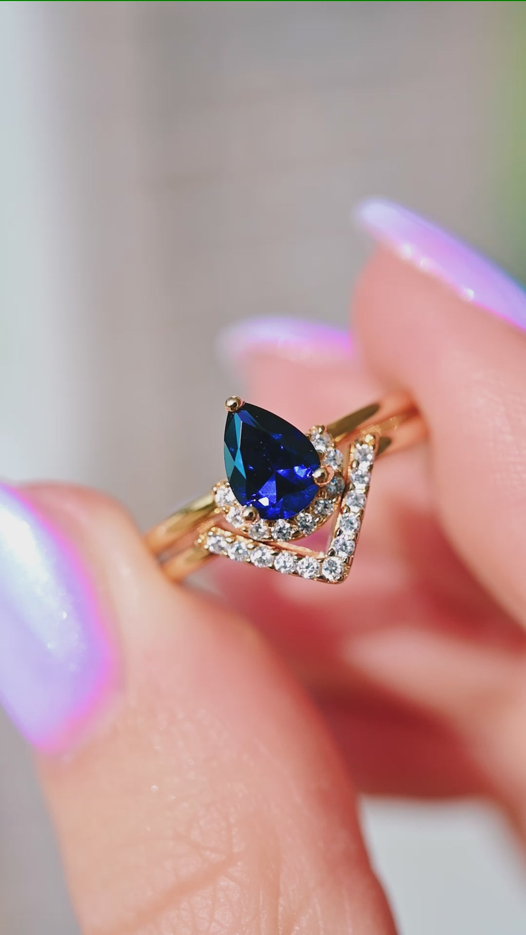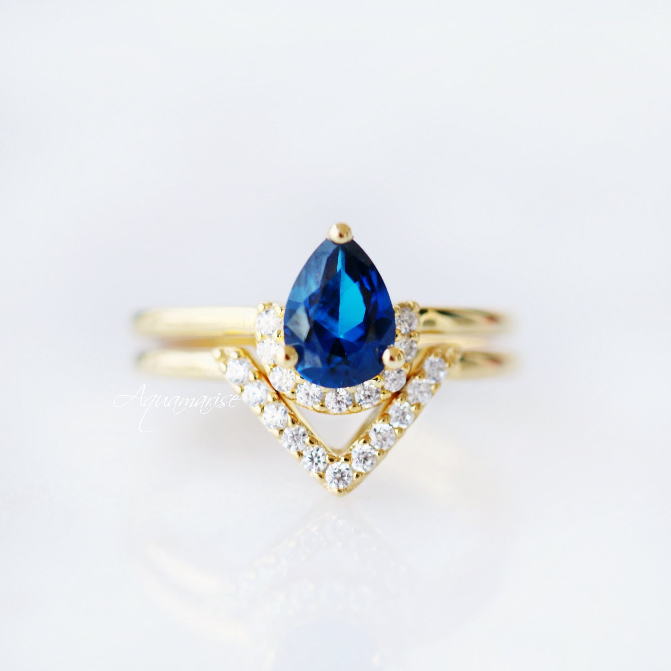 Aria Sapphire Ring Set- 14K Yellow Gold Vermeil