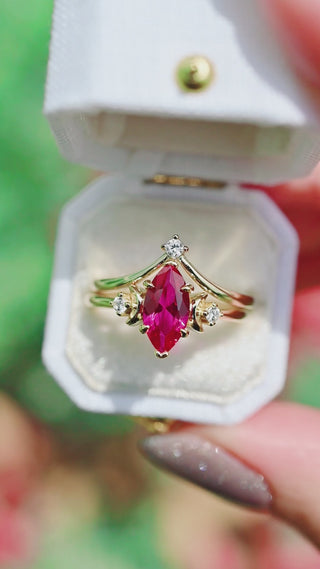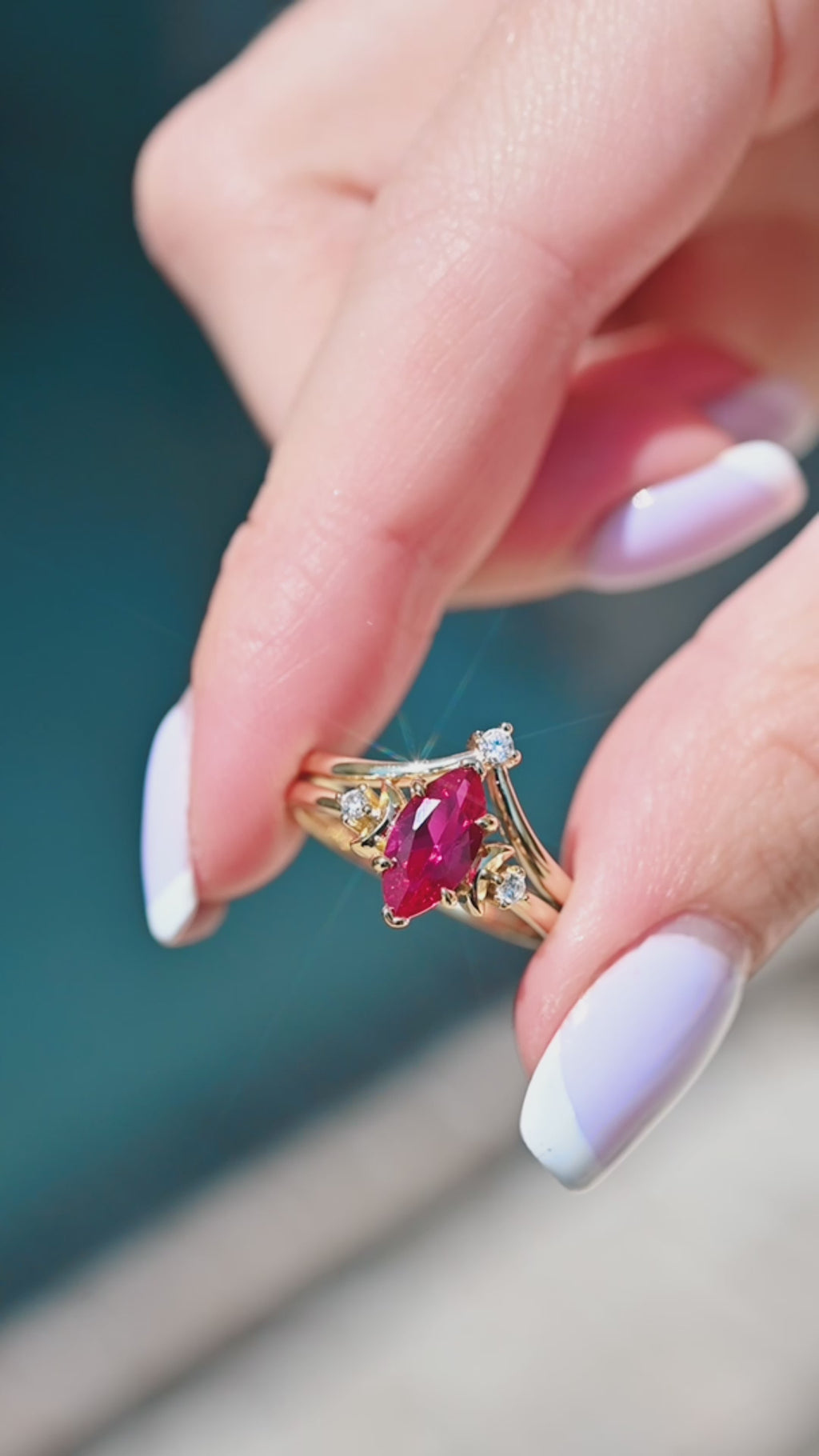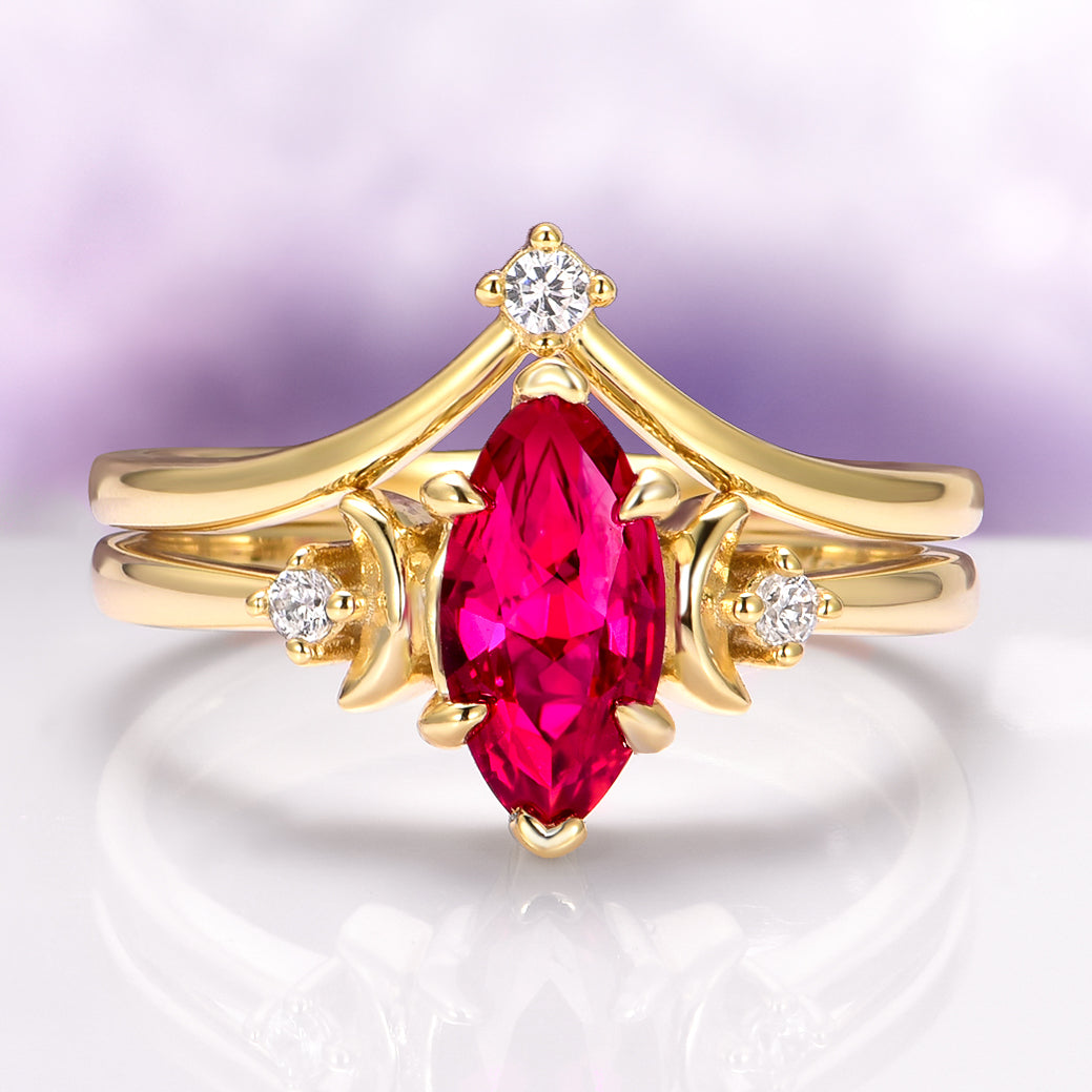 Crescent Moon Ruby Ring Set in 14K Yellow Gold Vermeil