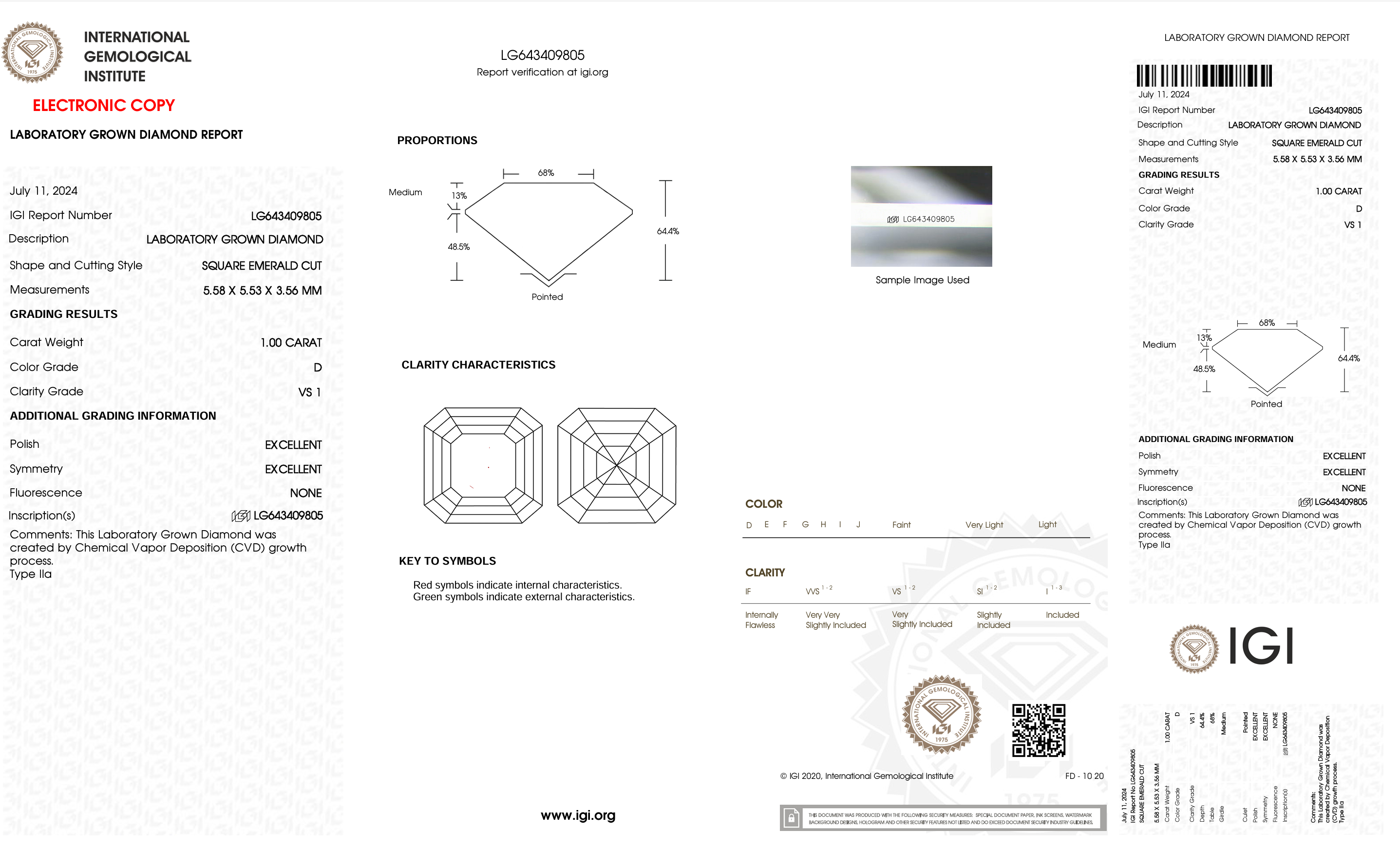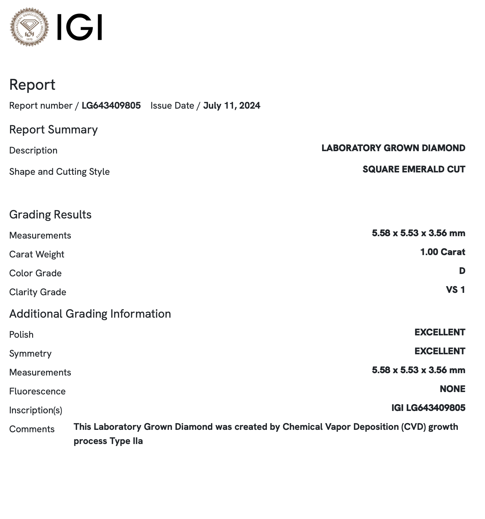 1.0 Carat Asscher Lab Grown Diamond (IGI)