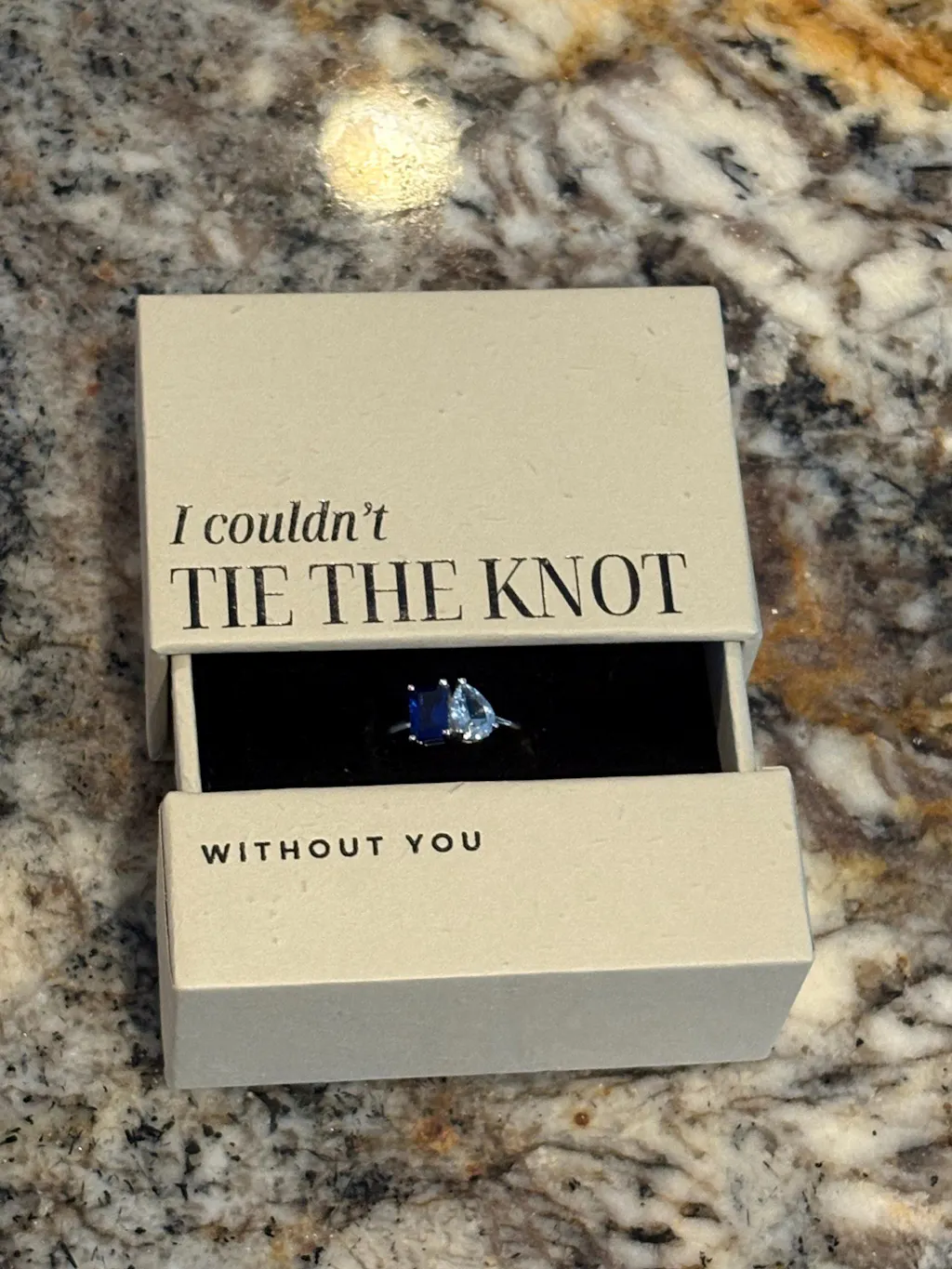 Beautiful ring, the gems aren’t too big or small. Fit perfectly. My sister and I birthstones and was a great sentimental gift. I used a different box to present it.