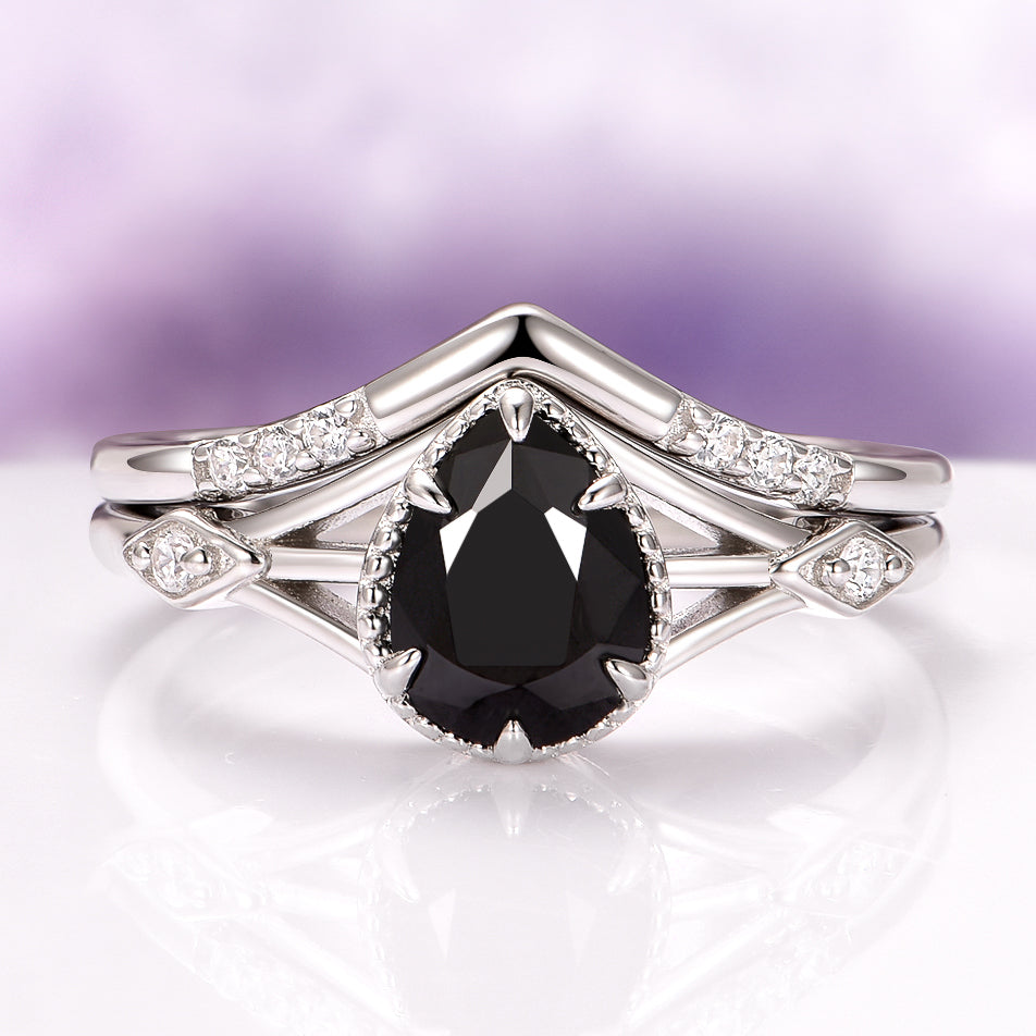 Celtic Black Onyx Engagement Ring Set in Sterling Silver
