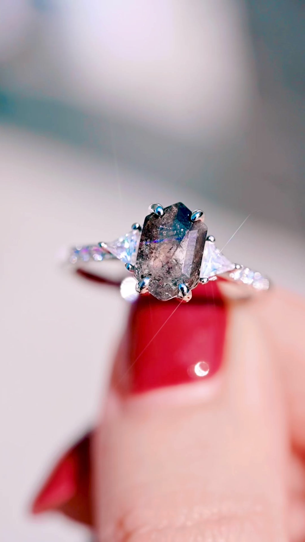 ► Unique geometric center stone for a modern, elevated aesthetic