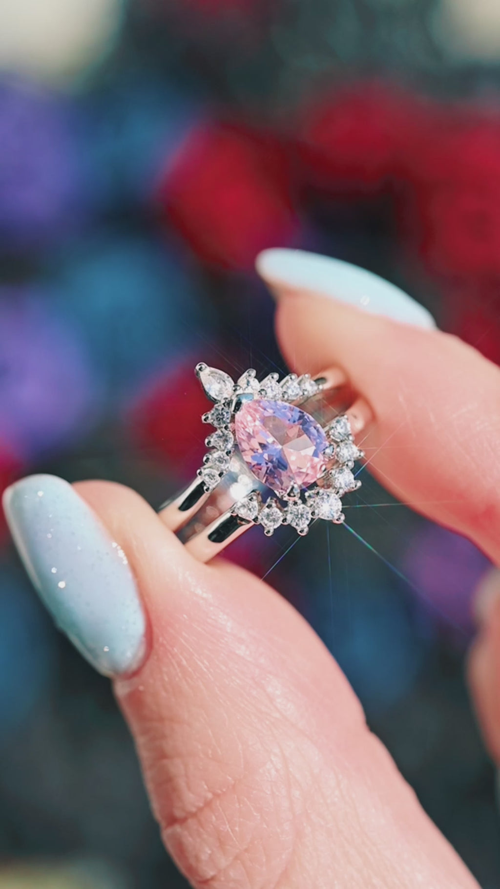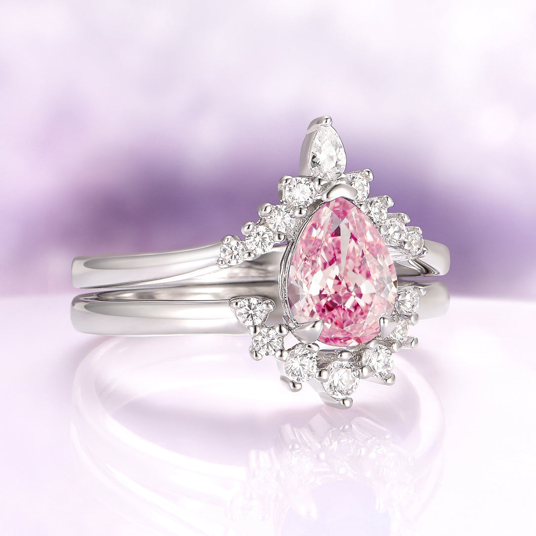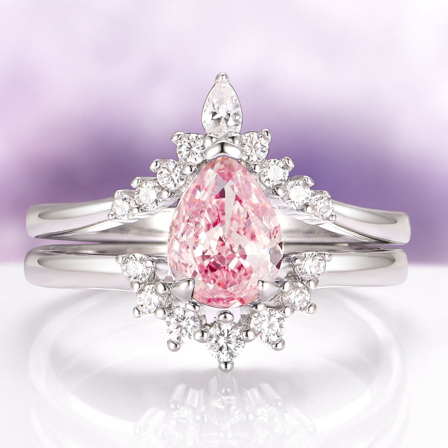 Lunette Teardrop Natural Pink Tourmaline Engagement Ring Set in 14K White Gold