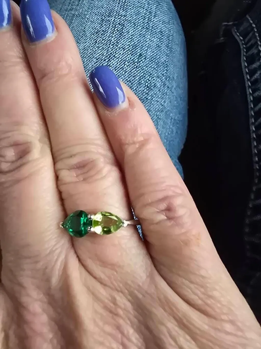 Toi Et Moi Peridot and Emerald Ring in Sterling Silver